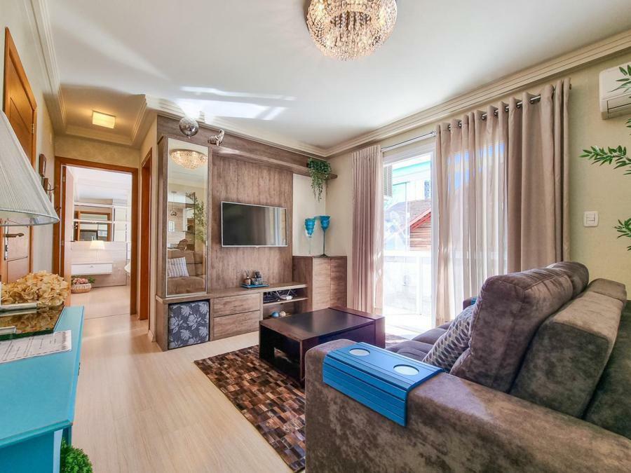 Corretor Gramado e Canela vende: Apartamento no centro mobiliado e decorado de 1 dormitório , living dois ambientes estar /jantar, banheiro social, sacada com churrasqueira, vaga de garagem. Prédio enxuto.