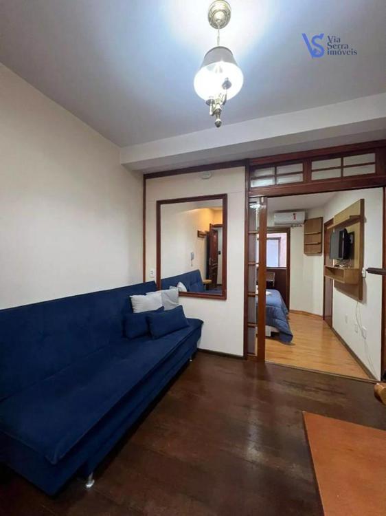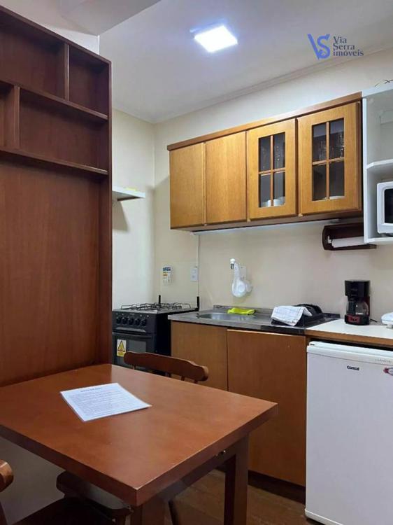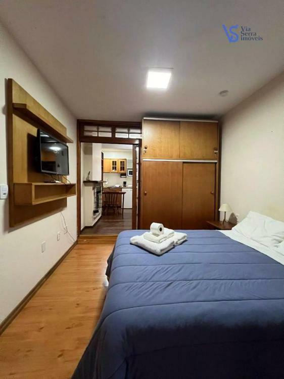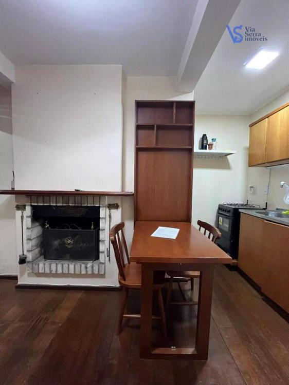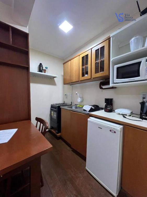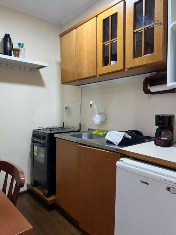 O imóvel possui 31,52m² privativos, distribuídos em sala e cozinha integradas, 1 dormitório, banheiro social, lareira e uma área fechada que pode ser usada como sacada/varanda, fica mobiliado e pronto para uso, oferecendo praticidade e conforto em um dos pontos mais valorizados da cidade.