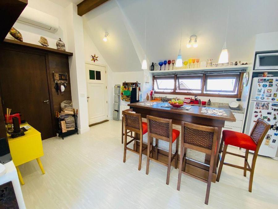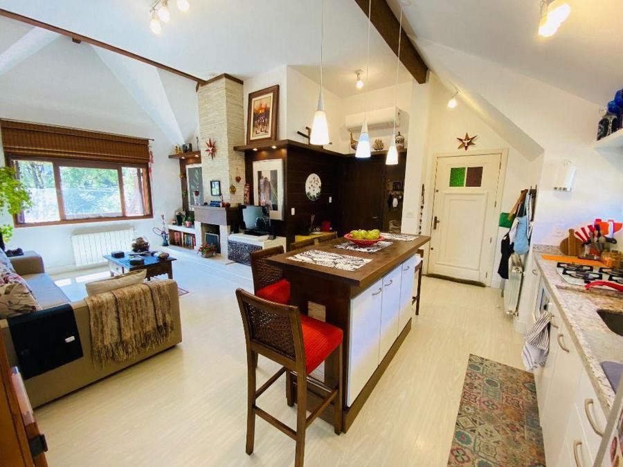 Corretor Gramado e Canela vende: Mobiliado perto do centro . Apartamento 1 dormitório. Pé direito duplo, banho social, living com lareira, cozinha americana, área de serviço, calefação e split instalados e vaga de garagem coberta.