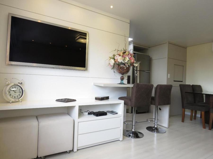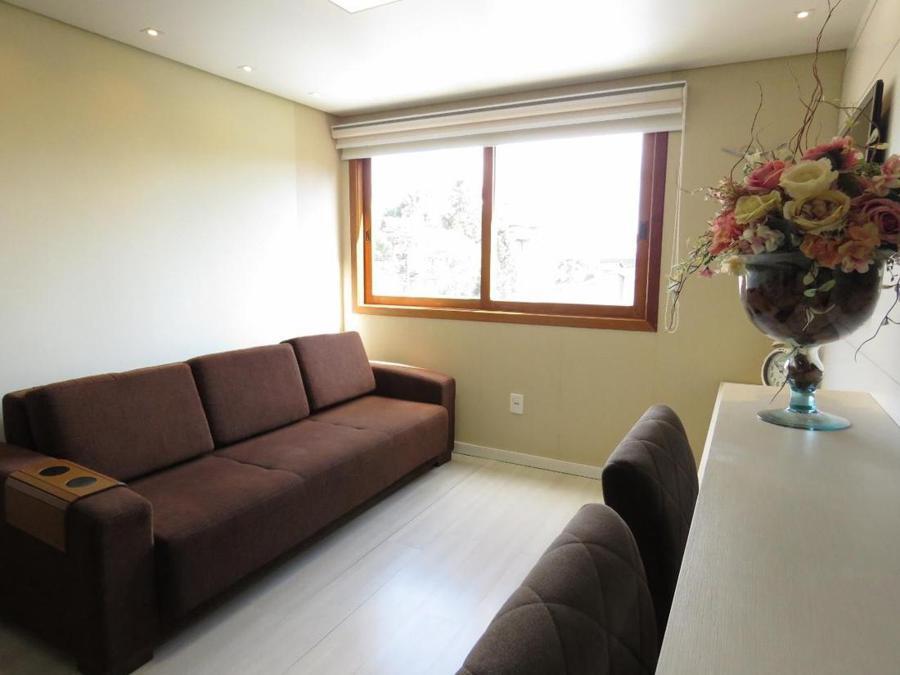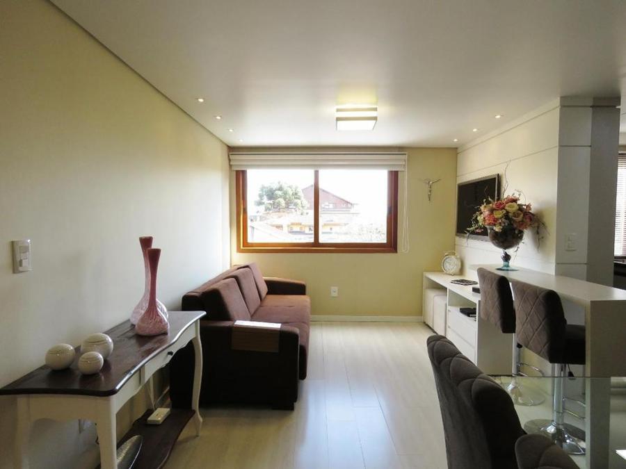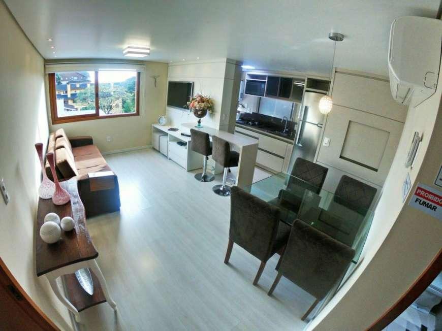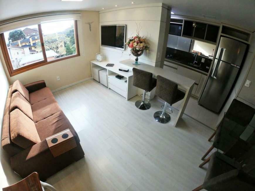 Corretor Gramado e Canela vende:. Apartamento com 1 dormitório (suíte ),mobiliado, lavabo, living com espera para lareira com a cozinha americana integrada, área de serviço e vaga de garagem. Prédio enxuto com elevador