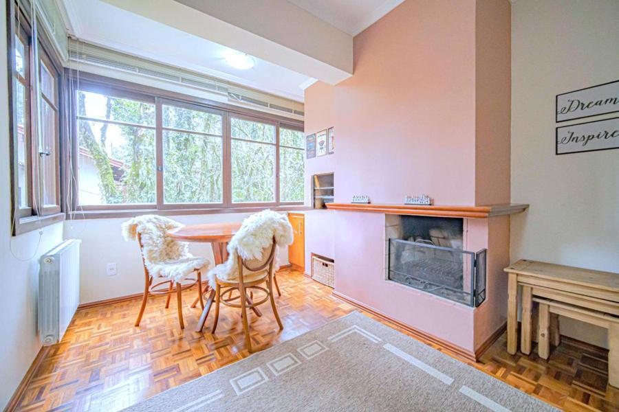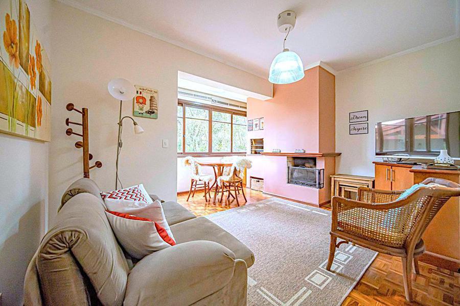 Corretor Gramado e Canela vende :. Apartamento mobiliado com 1 dormitório, living com lareira, sacada integrada com churrasqueira, cozinha americana, área de serviço e vaga de garagem coberta. Prédio com elevador