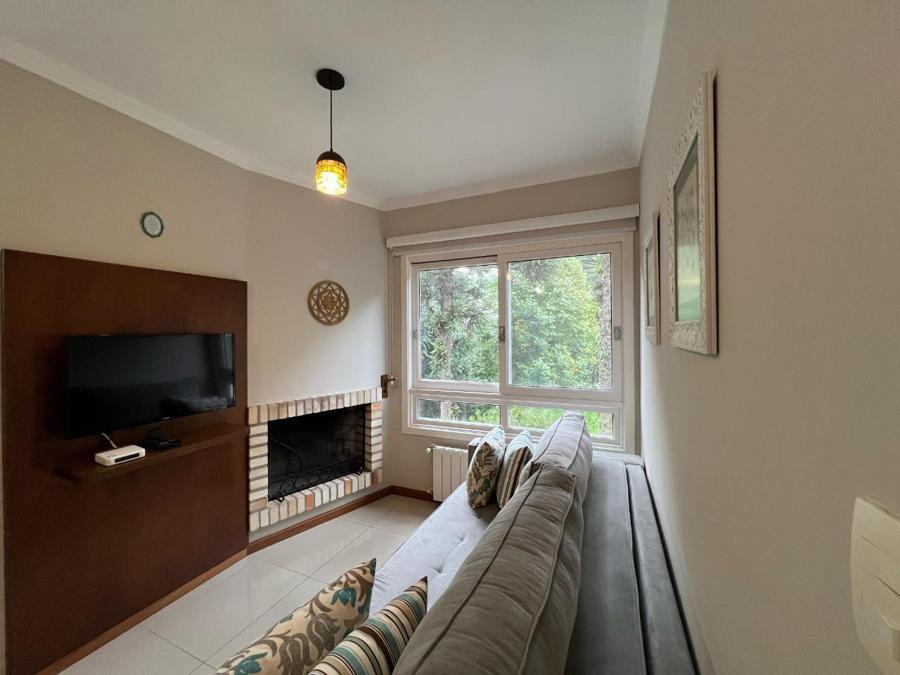 Corretor Gramado e Canela vende: Junto a um dos cartões postais da Serra Gaúcha. Apartamento mobiliado, 1 dormitório, living integrado dois ambientes com lareira, cozinha com churrasqueira, área de serviço, vaga de garagem , calefação e água quente instalada. Edifício com elevador, zeladoria e lindo jardim.