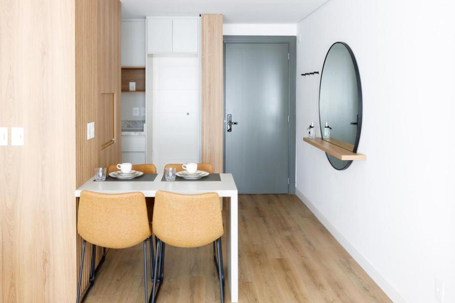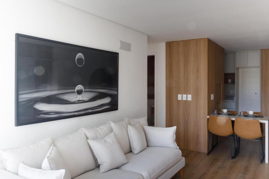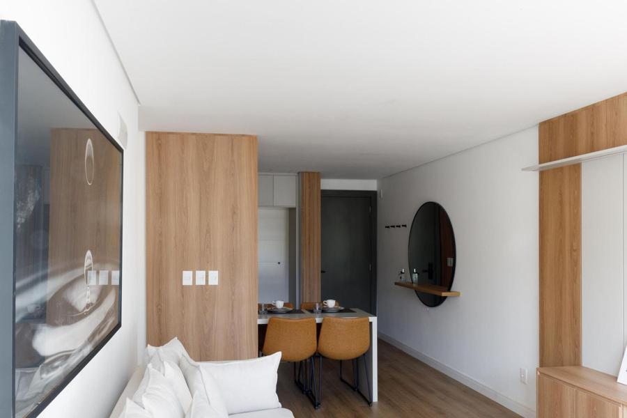 Composto por 01 suíte, lavabo, living com espera de lareira e sacada integrada, sala de jantar em conceito aberto, cozinha com churrasqueira, área de serviço e 01 vaga de garagem.