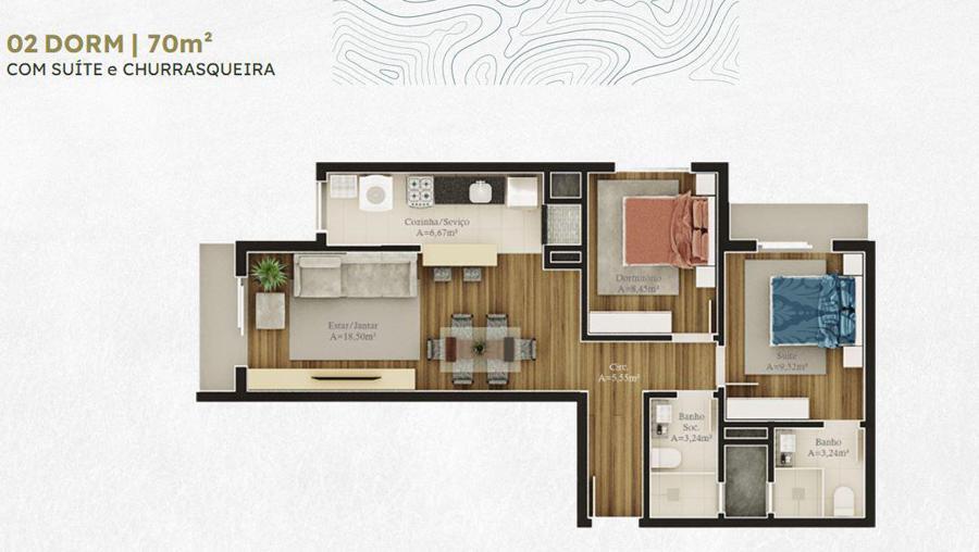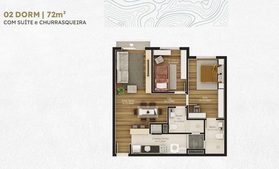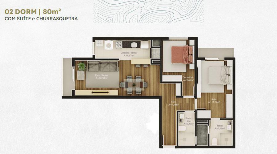 O prédio é composto por 30 apartamentos, sendo eles 28 de 02 dormitórios com 01 suíte e 02 apartamentos com 01 dormitório.