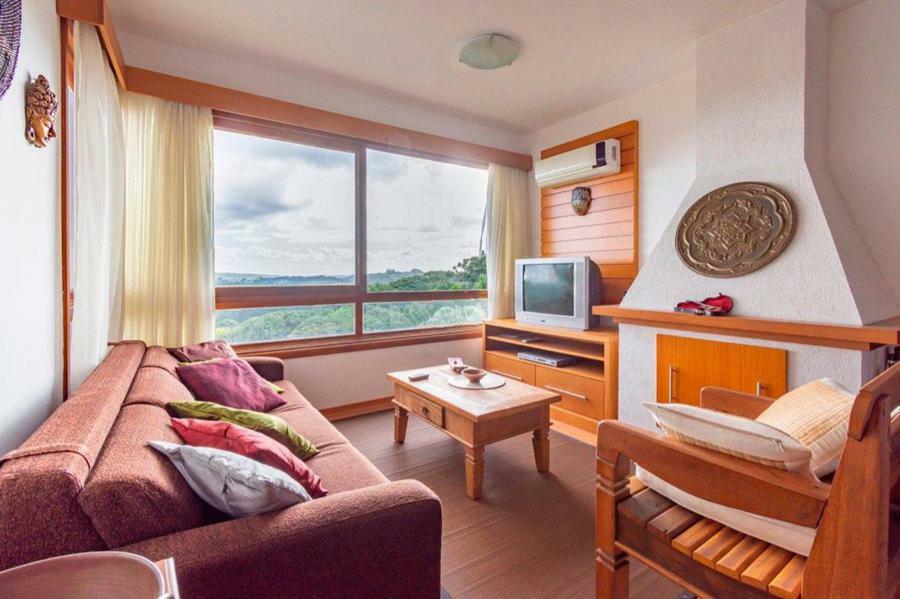 Corretor Gramado e Canela vende: Semi mobiliado, com vista permanente para vale do Quilombo. Apartamento com 1 dormitório, living com lareira, opção do 2 dormitório ou gabinete, cozinha americana com churrasqueira, lavanderia e garagem.