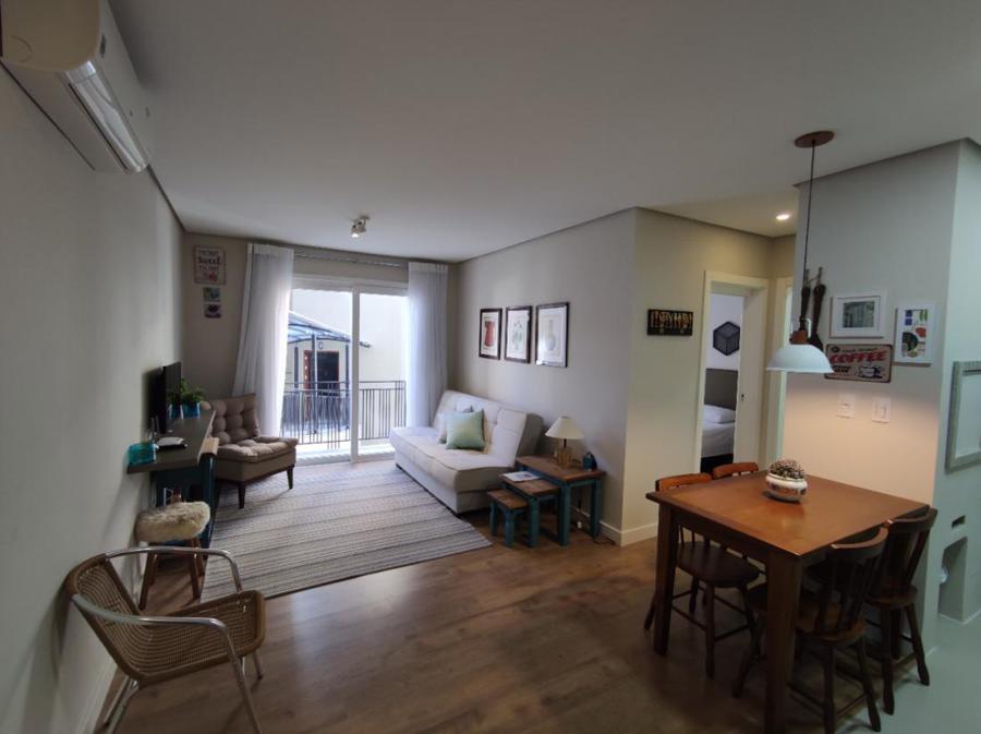 Corretor Gramado e Canela vende: Mobiliado. A poucos passos da Rua Coberta. Apartamento 1 dormitório, living amplo, sacada, banheiro social, cozinha americana com churrasqueira, lavanderia e vaga de garagem.