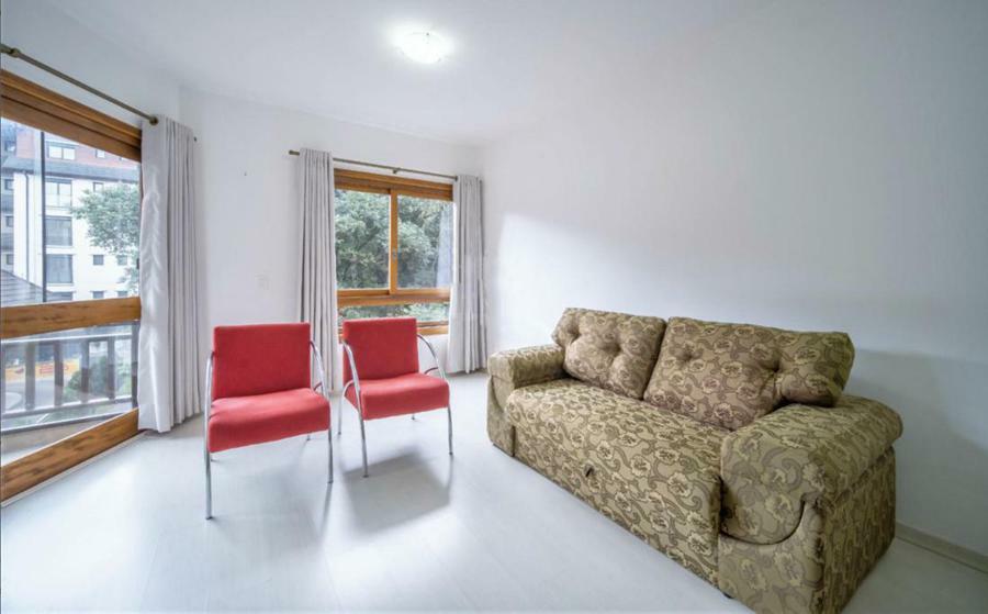 Corretor Gramado e Canela vende: Mobiliado a apenas 350m da Rua Coberta. Apartamento com 1 dormitório, banheiro social, living com espera para lareira e sacada integrada, cozinha americana, lavanderia e garagem.