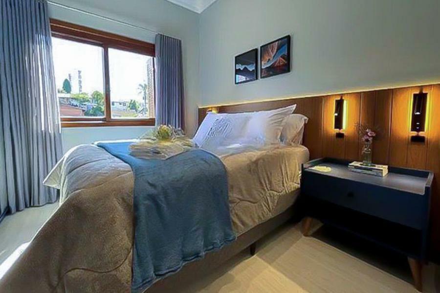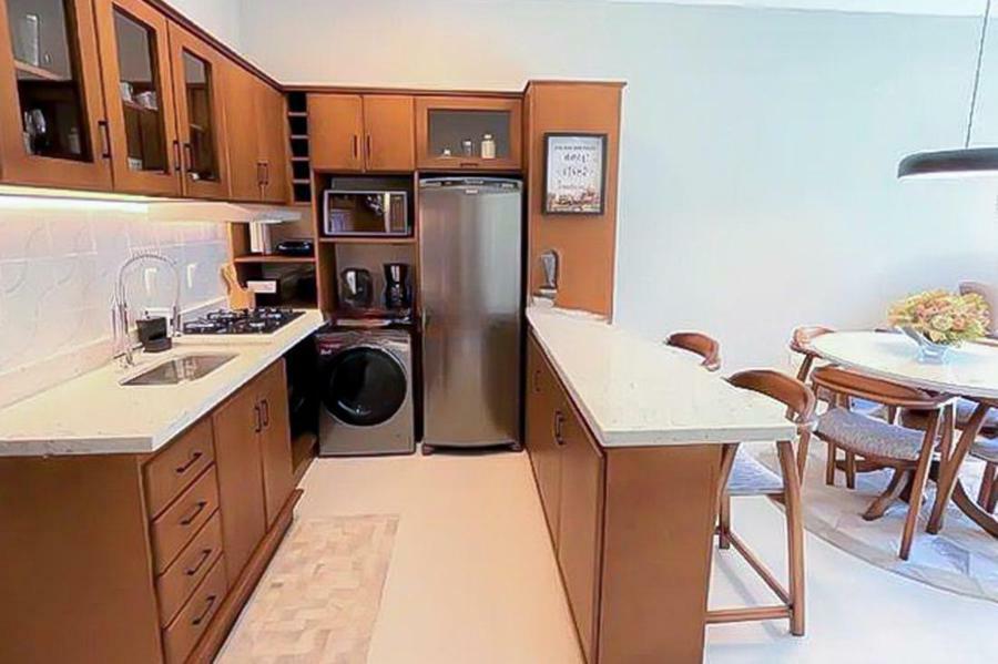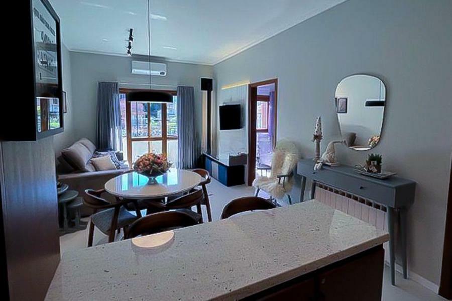 Corretor Gramado e Canela vende : Apartamento perto da Borges de 1 dormitório mobiliado, cozinha americana, sacada integrada, banheiro social, split e calefação instalados,1 vaga de garagem. Condomínio com infra.