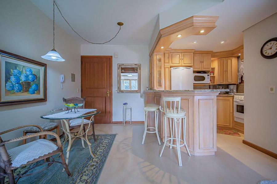 Corretor Gramado e Canela Vende: Apartamento mobiliado de 1 dormitório próximo ao centro ! localizado em um condomínio com amplo jardim, possui living com dois ambientes, banheiro social, vaga de garagem.