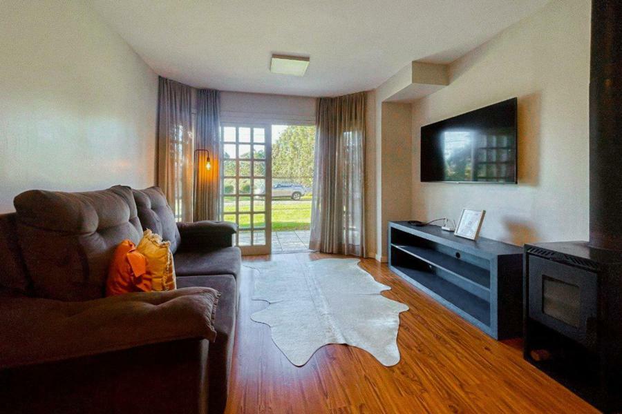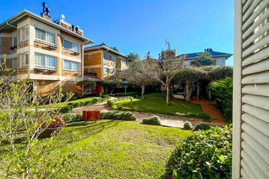 Corretor Gramado e Canela vende Apartamento com 2 dormitórios, sendo uma suíte, banheiro social, sala de jantar e estar integradas, lareira com pátio privativo, acessível diretamente da sala de estar e com vista para o lago, cozinha planejada e a área de serviço, vaga de garagem coberta