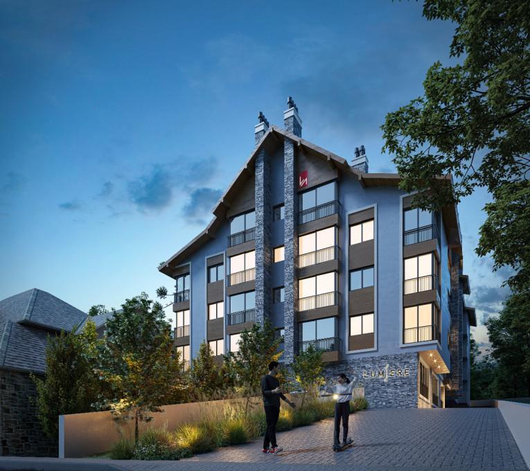 LUMIERE Com nome inspirado nos criadores do cinema, o Lumiere é a escolha certa para quem quer protagonizar os melhores momentos de sua vida. Sinta o glamour da sétima arte preencher seus dias em Canela. LOCALIZAÇÃO Localizado no centro da cidade, 400 metros da Catedral de Pedra, uma das igrejas mais lindas do Brasil e 500 metros da Rua Coberta de Canela. SALA DE CINEMA Espaço cuidadosamente equipado com os aparatos que permitirão apreciar todos os detalhes que compõem a obra fílmica: as cores na fotografia, os detalhes do som, e a fluidez do filme. SALÃO GOURMET 1 E 2 Dois salões Gourmet mobiliados, equipados e decorados. PATINETES ELÉTRICOS Empreendimento entregue com patinetes para uso comum dos moradores. Apartamento: - 02 dormitórios (sendo 01 suíte); - Living; - Cozinha; - Sacada; - 01 Vaga de Garagem; Diferenciais: - Churrasqueira; - Espera para Lareira, Split e Calefação; - Forro de Gesso em todos os Ambientes; - Água quente em todos os pontos; - Piso Laminado e Porcelanato; - Vidros duplos; - Esquadrias em PVC; - Reaproveitamento da água das chuvas; - Gás Central; - Espera para CFTV; - Medidores individuais
