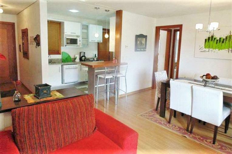 Corretor Gramado e Canela vende : Semi mobiliado, perto da Rua Coberta. Apartamento com 2 dormitórios (1 suíte), living com lareira e sacada com churrasqueira, cozinha americana, lavanderia e garagem.
