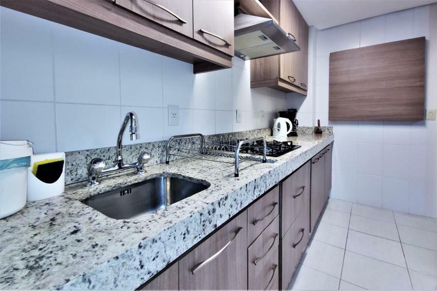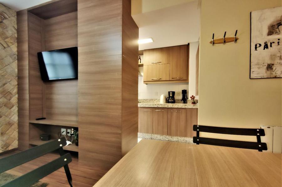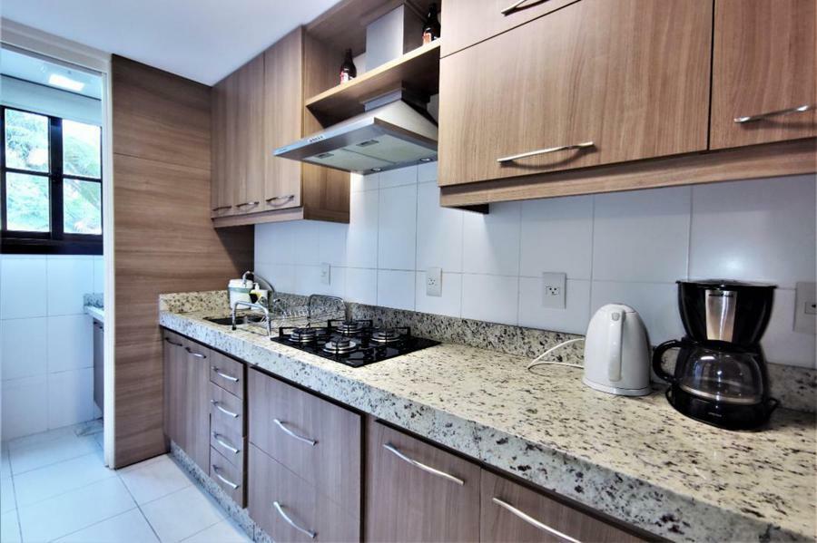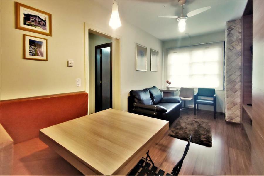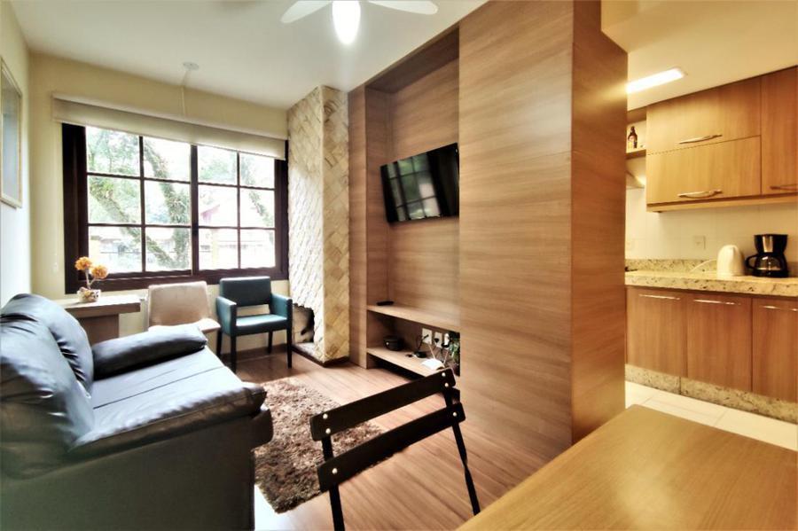 Corretor Gramado e Canela vende: Apartamento mobiliado com 2 dormitórios (1 suíte), banheiro social, living com lareira, cozinha americana com churrasqueira, área de serviço, banheiro social, vagas de garagens.