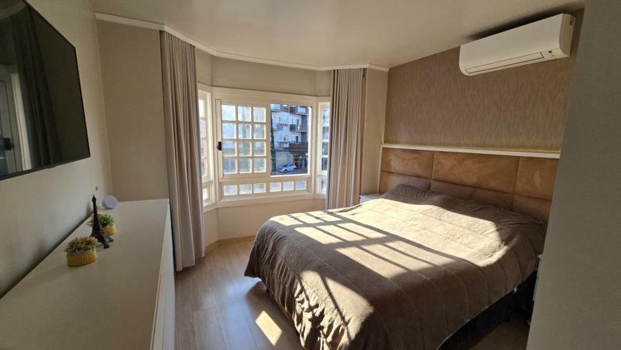 Corretor Gramado e Canela Vende: Apartamento amplo com sacada gourmet frente a Rodoviária de Gramado. possui 2 dormitórios (1 suíte), living amplo com lareira, sacada integrada com churrasqueira, cozinha, banheiro social e vaga de garagem.