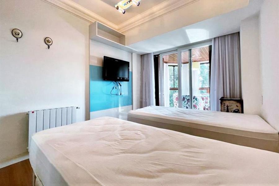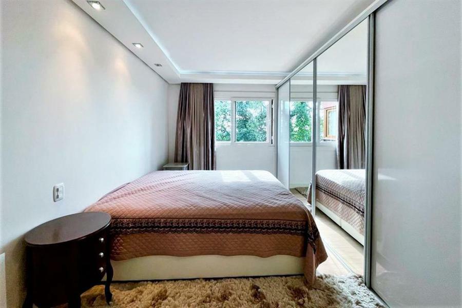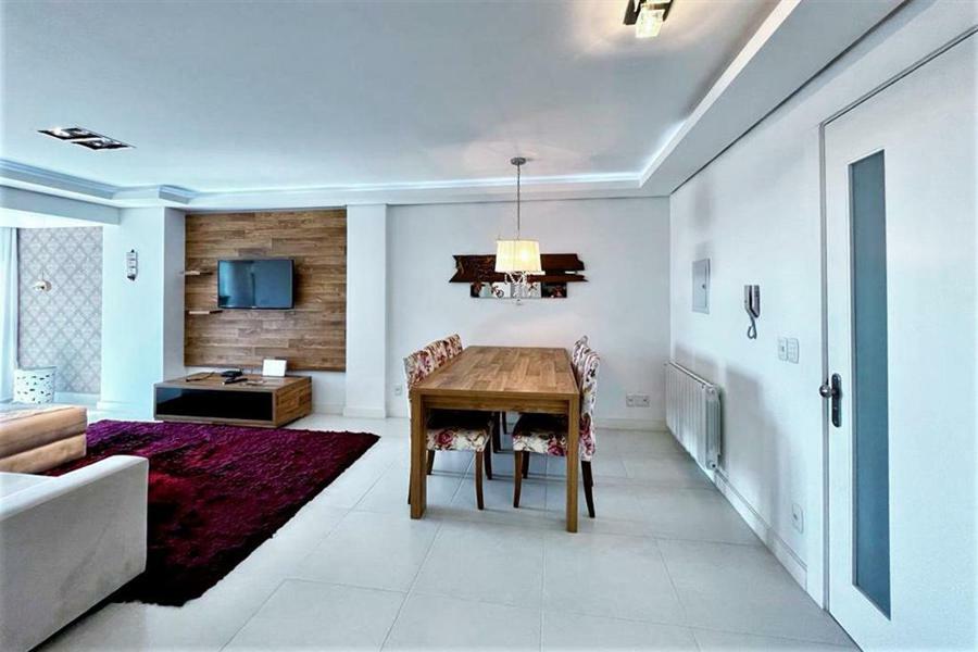 Corretor Gramado e Canela vende: Mobiliado, perto do centro. Apartamento com 2 dormitórios (1 suíte), banheiro social, living com espera para lareira e sacada, cozinha americana com churrasqueira e garagem.