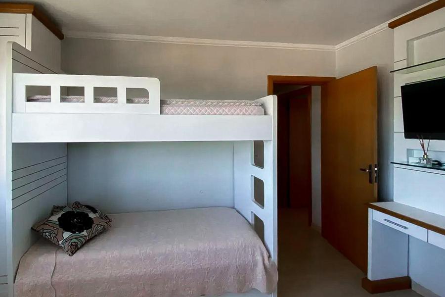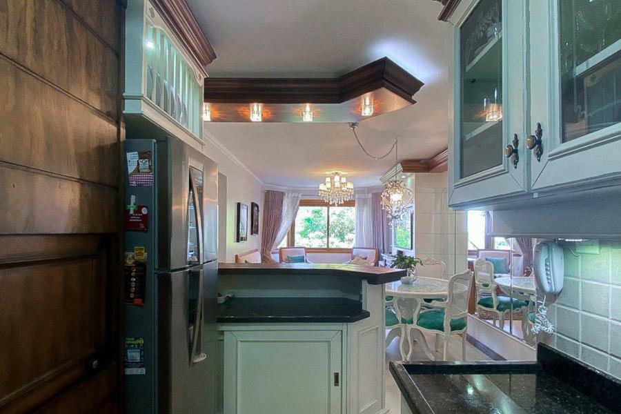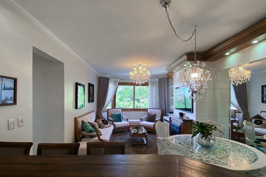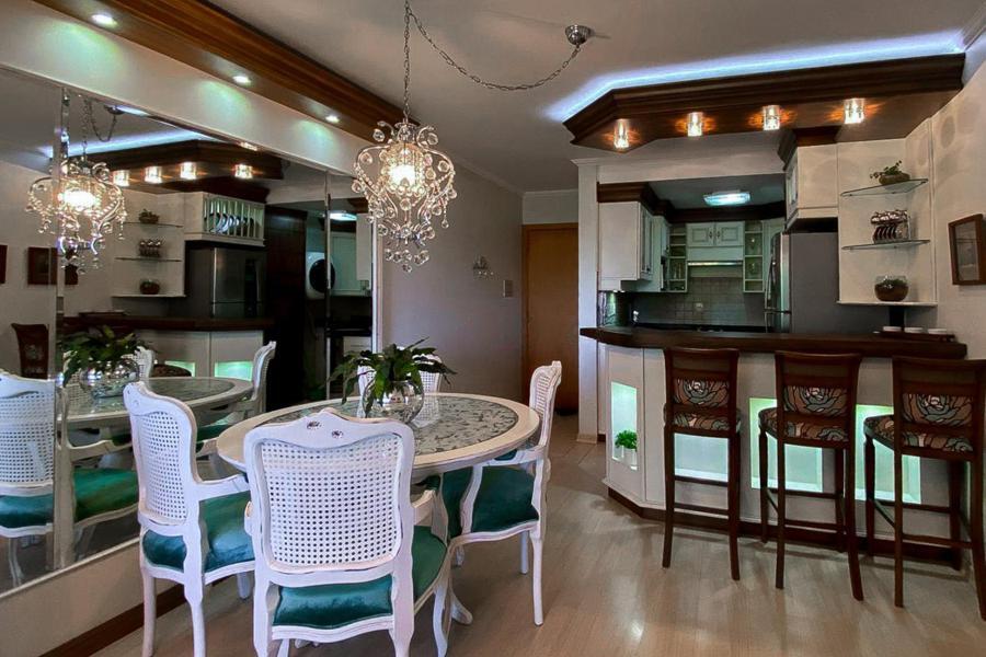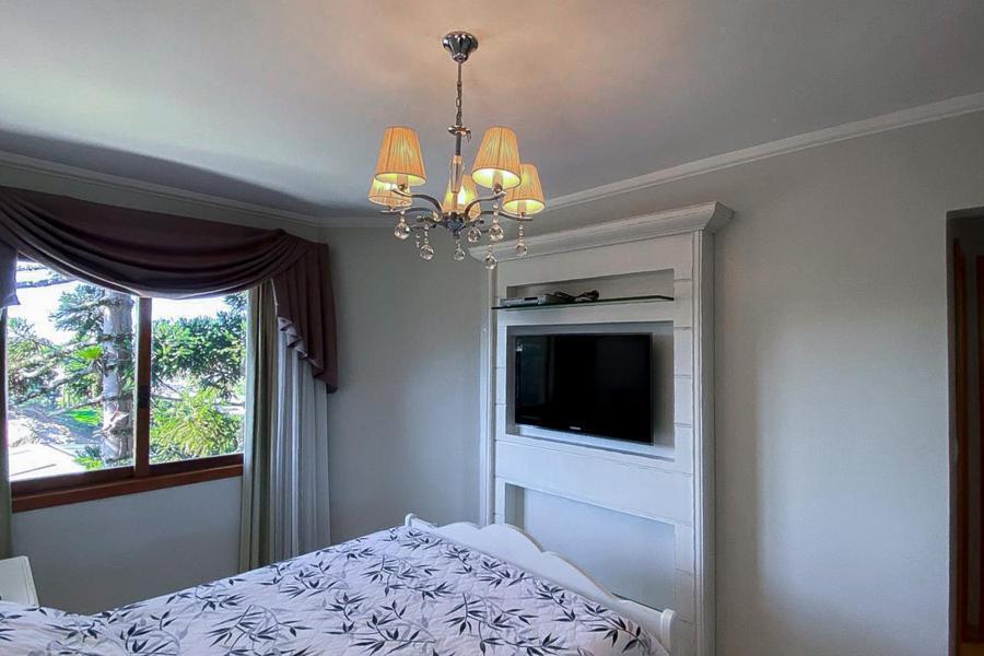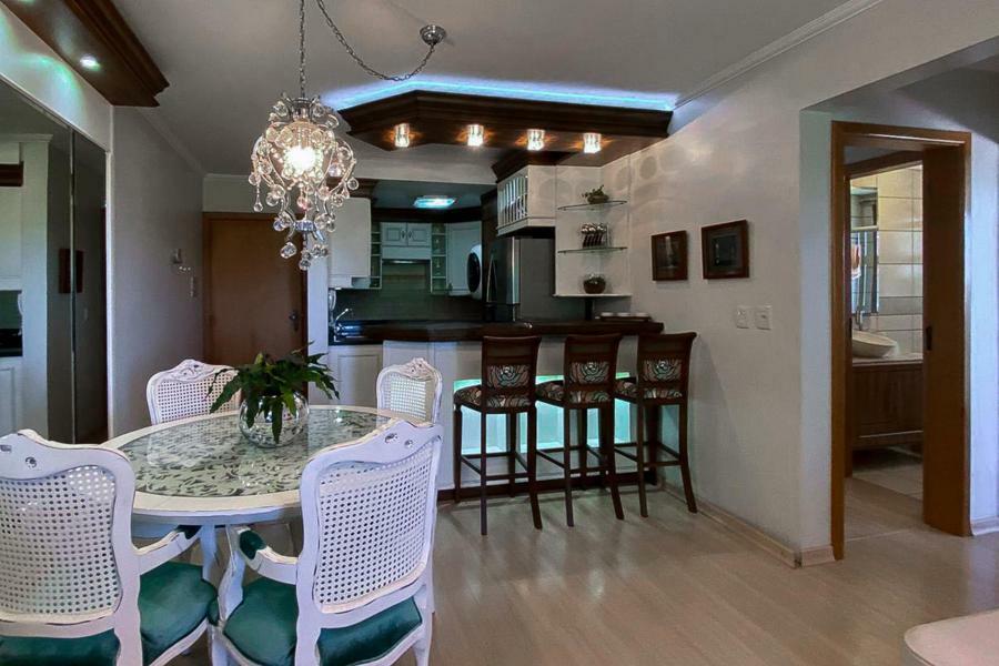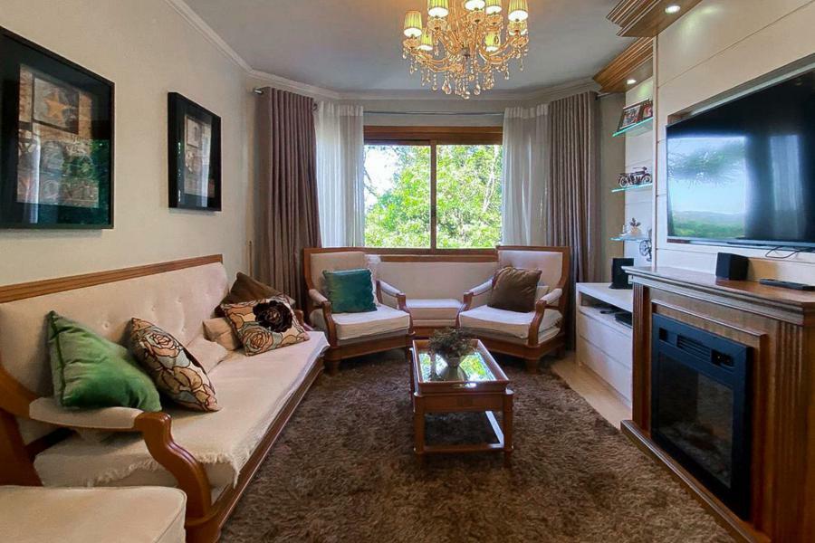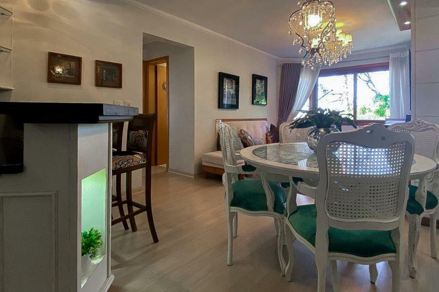 Corretor Gramado e Canela vende: Apartamento semi mobiliado composto de living integrado de estar e jantar com lareira, cozinha americana com churrasqueira, banheiro social, dois dormitórios sendo um deles suíte . Possui vaga de garagem. Prédio com elevador, salão de festas gourmet, deck com chimarródromo, lavanderia coletiva, zeladoria.