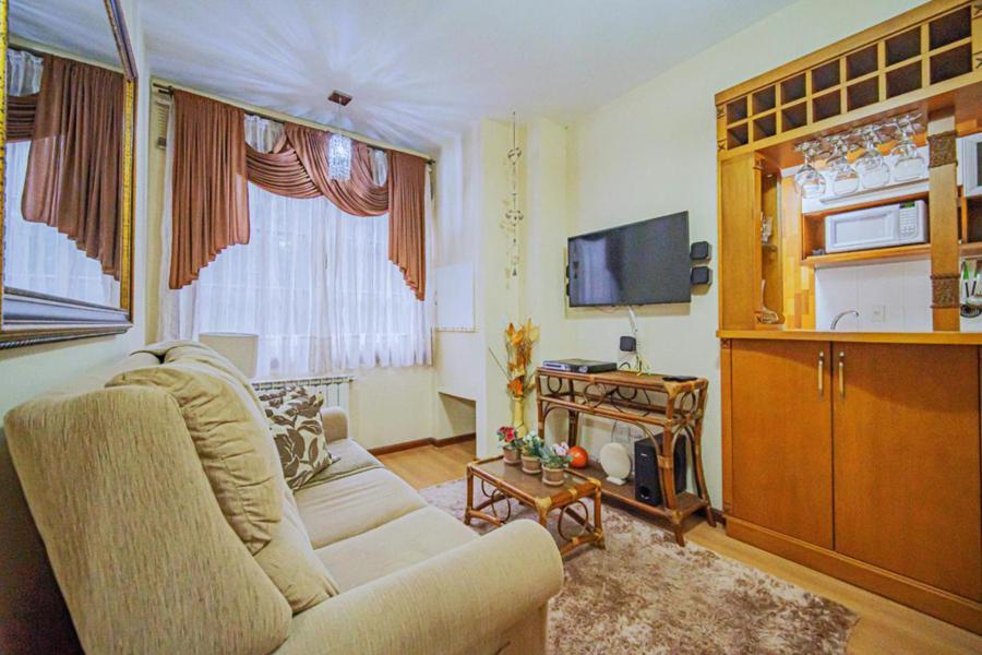 Corretor Gramado e Canela vende: Apartamento mobiliado, a poucos passos da Av. Borges de Medeiros. Apartamento com 2 dormitórios ( sendo 1 suíte ) , banheiro social, living com sacada integrada e churrasqueira, cozinha americana e vaga de garagem. Prédio enxuto com elevador excelente para rentabilizar com locação.