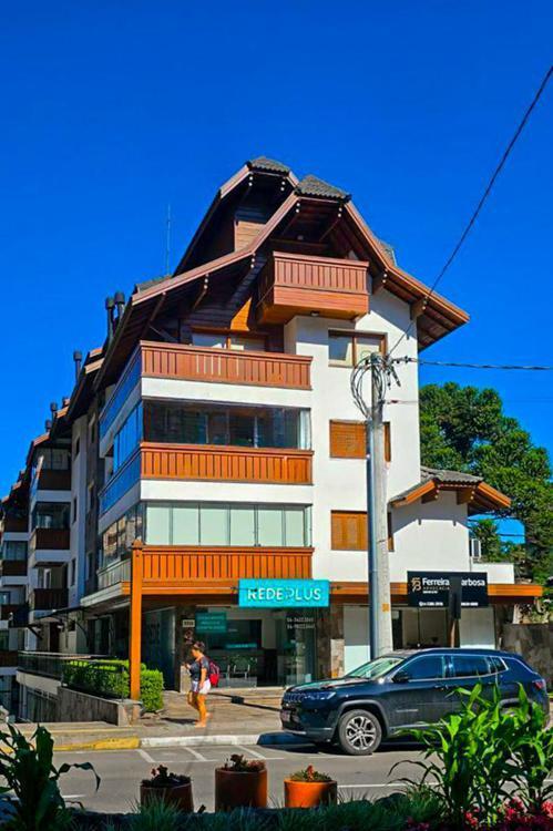 Corretor Gramado e Canela vende: Apartamento de 2 dormitórios (sendo 1 suíte), semi-mobiliado, jantar, estar com ampla sacada e privilegiada em relação a orientação solar, cozinha com área de serviço e churrasqueira, banheiro social, calefação e água quente instalados e duas vagas de garagem