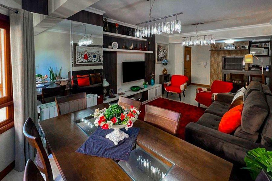 Corretor Gramado e Canela vende: Apartamento finamente mobiliado perto do centro. Apartamento 2 dormitórios ( 1 suíte ), living amplo com sacada integrada e lareira, cozinha americana com churrasqueira, banheiro social e vaga de garagem.