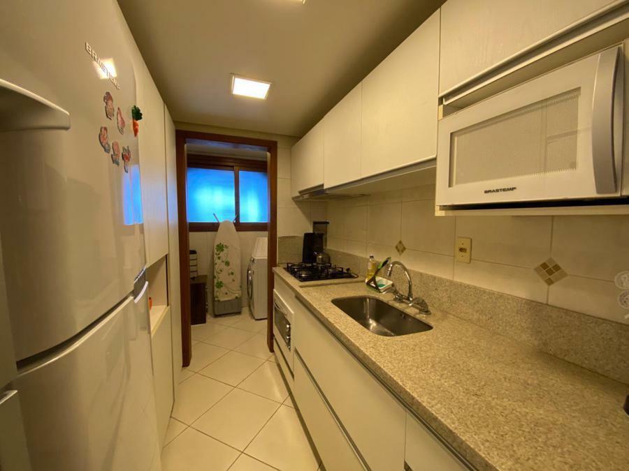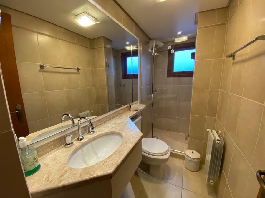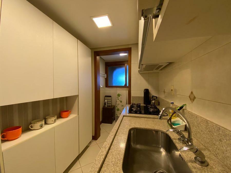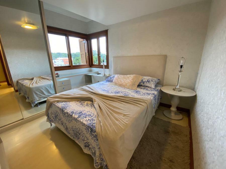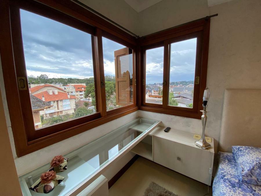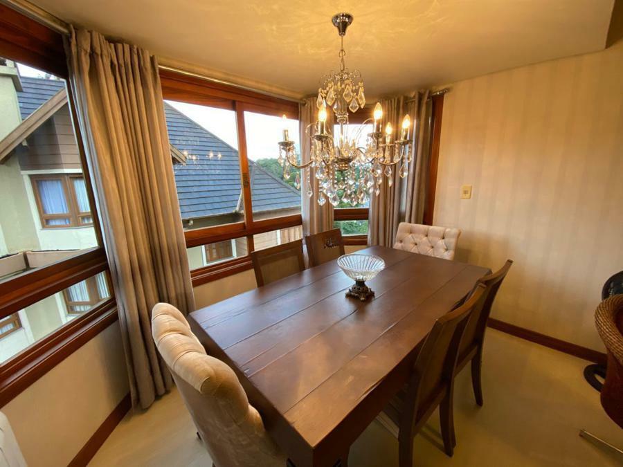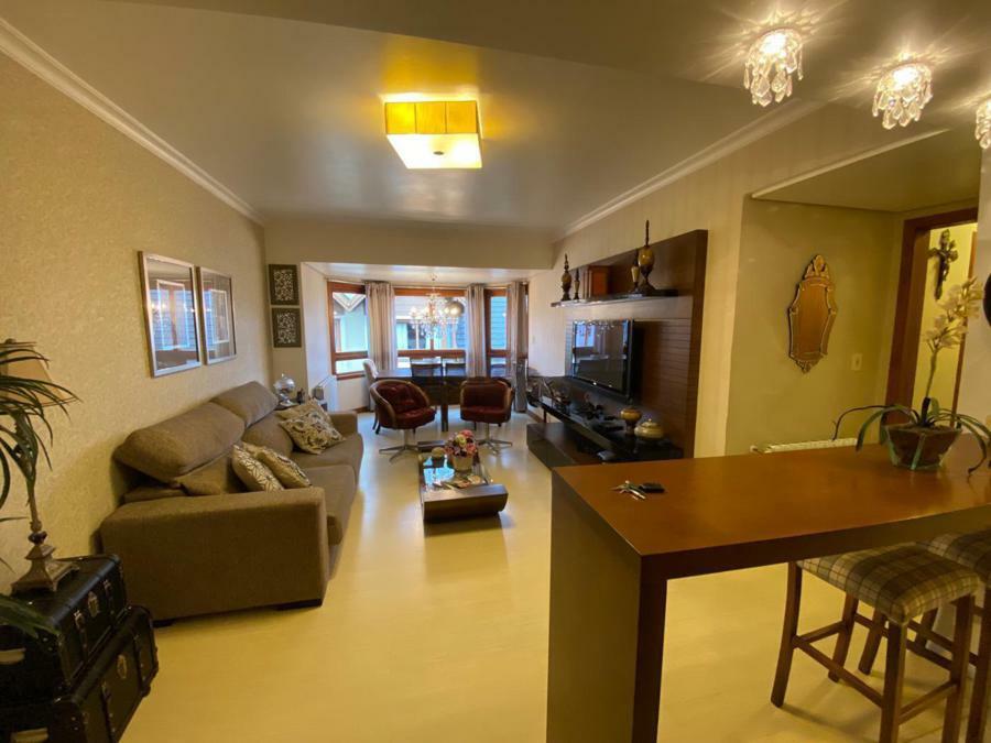Corretor Gramado e Canela vende: Mobiliado perto do centro. Apartamento 2 dormitórios ( 1 suíte ), living amplo com sacada integrada e lareira, cozinha americana com churrasqueira, banheiro social e vaga de garagem.