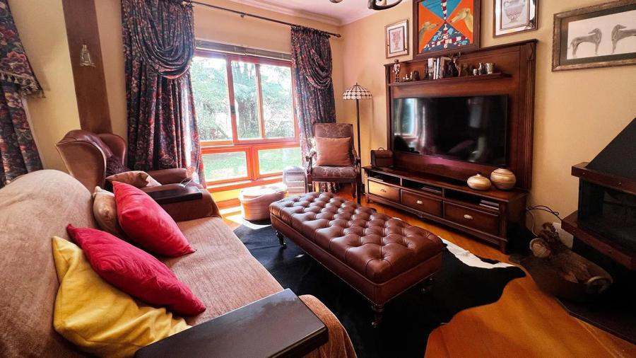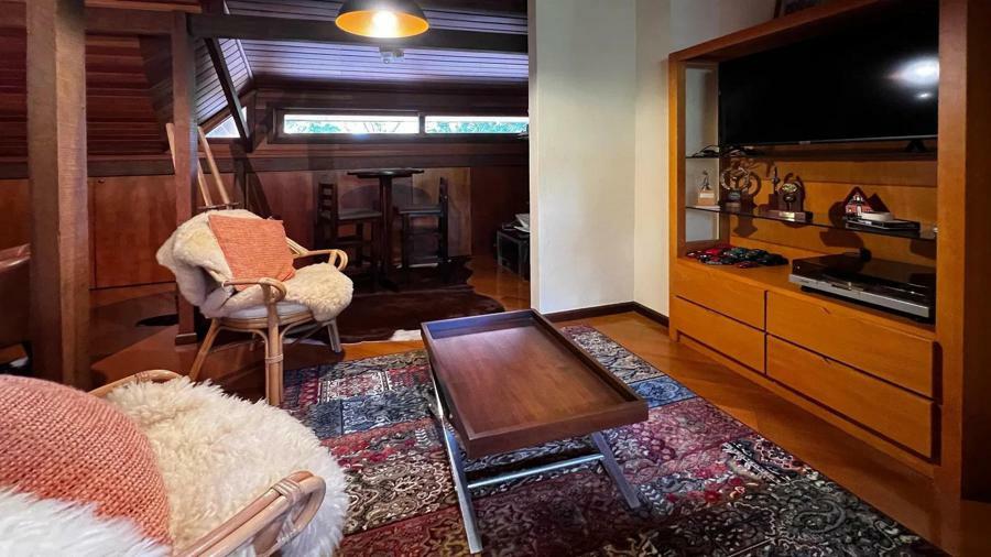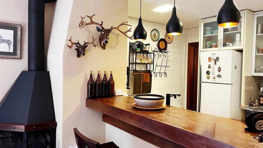 Corretor Gramado e Canela Vende Apartamento com 2 dormitórios, living de estar e jantar com lareira e vista para o jardim, lavabo, cozinha americana com churrasqueira, mezanino, com estar [intimo, vaga dupla de garagem.