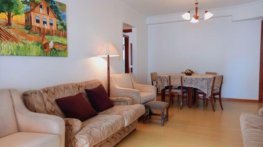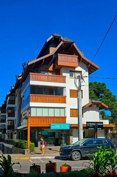 Corretor Gramado e Canela vende: Apartamento totalmente mobiliado em plena Borges de Medeiros em Gramado. Possui 2 dormitórios, ( sendo 1 suíte), banheiro social, sala de estar e jantar integrada com uma sacada externa fechada em vidro. Excelente luminosidade e sol tornando o apartamento aconchegante e silencioso. Possui água quente em todas as torneiras, área de serviços. Uma vaga de garagem no subsolo com acesso pelo elevador até o andar do apartamento.