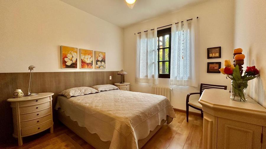 Corretor Gramado e Canela vende: Apartamento mobiliado, perto da Rua Coberta em condomínio com infra de lazer completa e servilo de Resort. Possui com 2 dormitórios (1 suíte com hidro), living de estar e jantar com lareira, banheiro social, cozinha americana com churrasqueira, área de serviço e vaga de garagem.