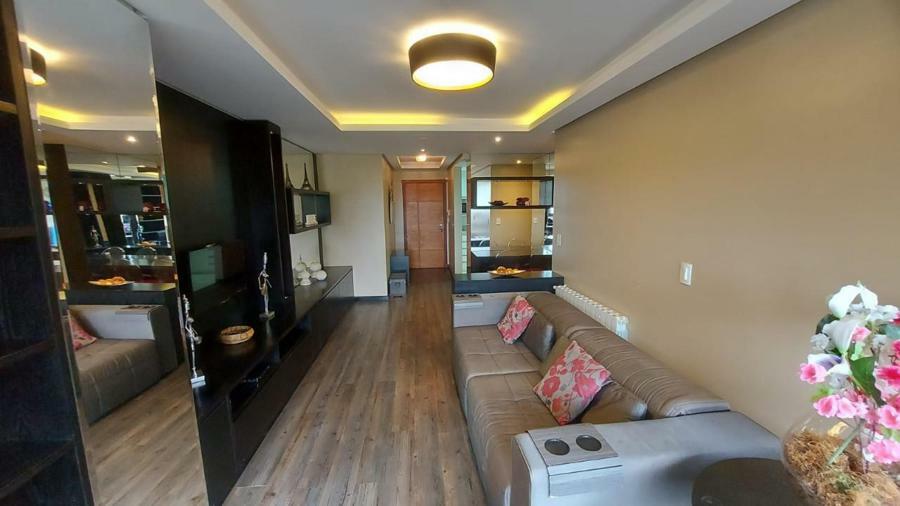 Corretor Gramado e Canela vende: Apartamento mobiliado com 2 dormitórios ( sendo 1 suíte), living amplo de estar e jantar integrados a cozinha americana com churrasqueira, área de serviço e vaga de garagem. Infraestrutura de lazer completa e o conforto de desfrutar da gastronomia e comercio do centro de Gramado sem tirar o carro da garagem.