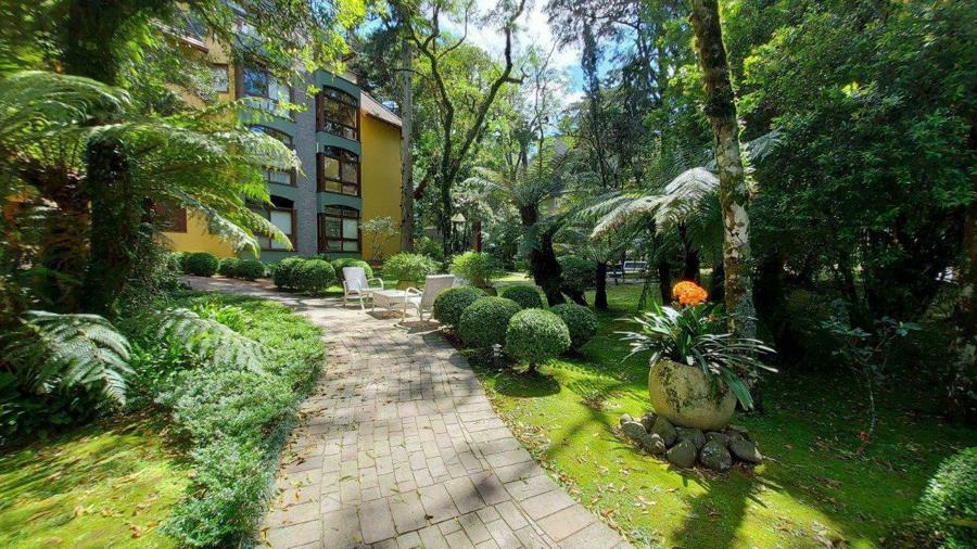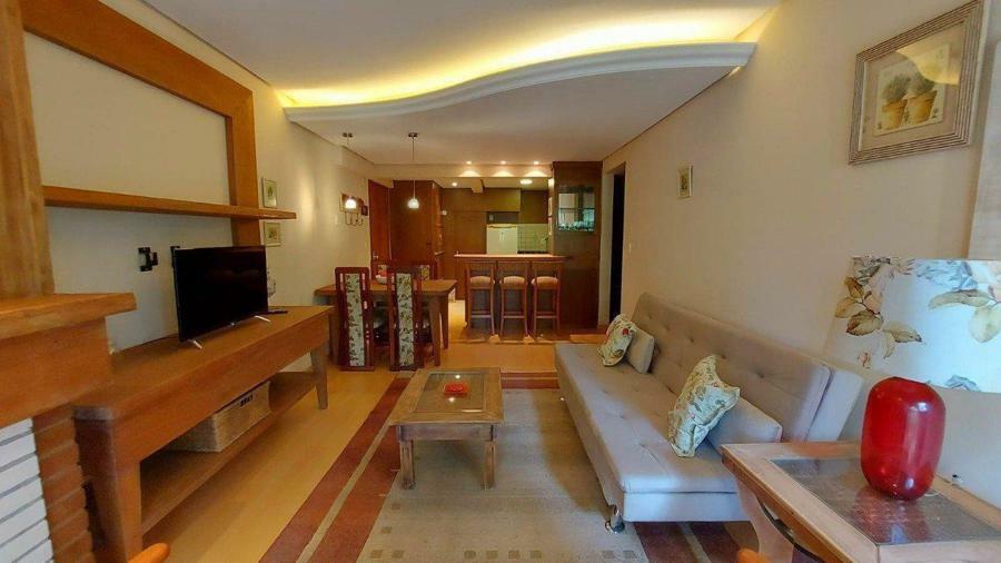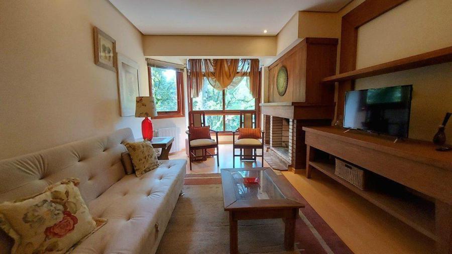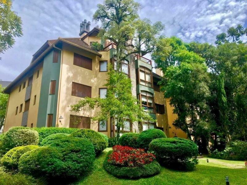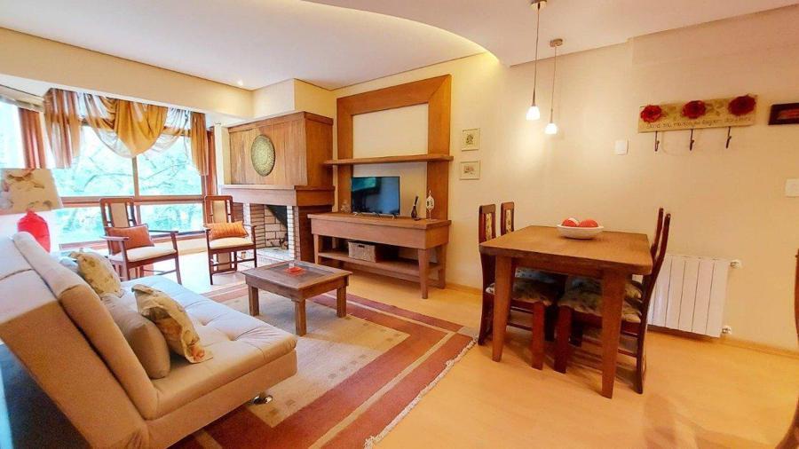 Corretor Gramado e Canela vende: Aconchegante e pronto para usar no centro de Gramado. Excelente apartamento mobiliado e decorado, 2 dormitórios (sendo 1 suíte), banheiro social, living de etar e jantar com lareira, cozinha integrada com churrasqueira, calefação instalada, garagem. Edifício com elevador, lindo e amplo jardim.