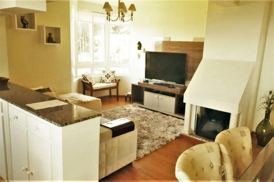 Corretor Gramado e Canela vende: Apartamento mobiliado com vista para o vale de 2 dormitórios ( 2 suítes, 1 máster ), living, lareira, sacada integrada, churrasqueira, lavabo, cozinha americana, vaga de garagem