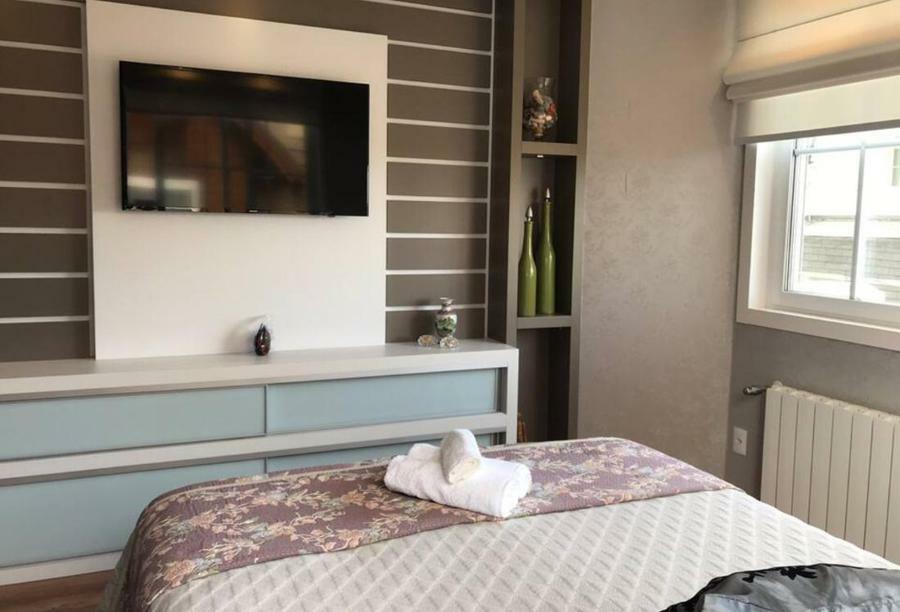 Corretor Gramado e Canela vende: Mobiliado, perto da Rua Coberta. Apartamento 2 dormitórios (1 suíte), living com sacada e lareira, banheiro social, cozinha americana, churrasqueira, área de serviço e vaga de garagem.