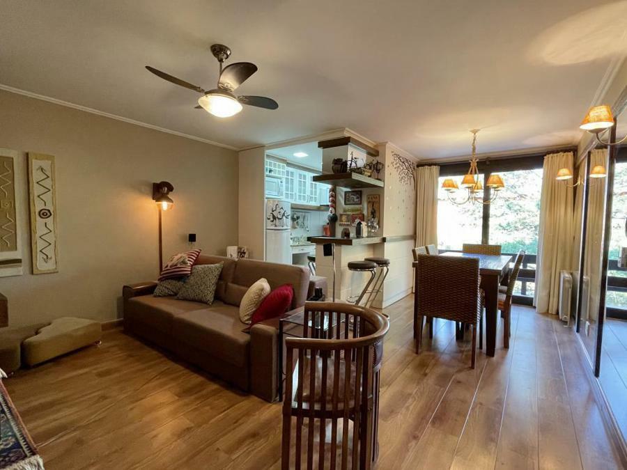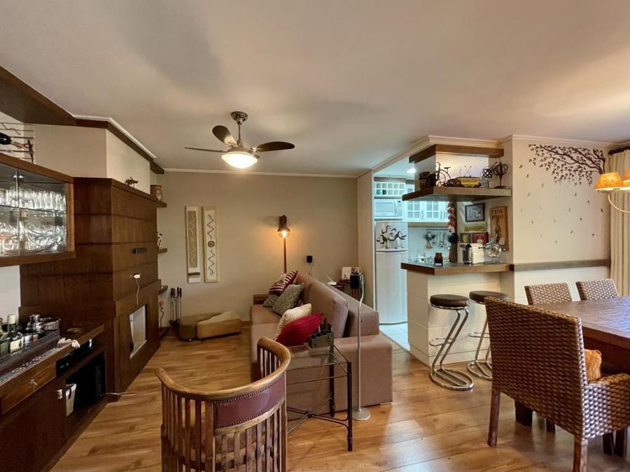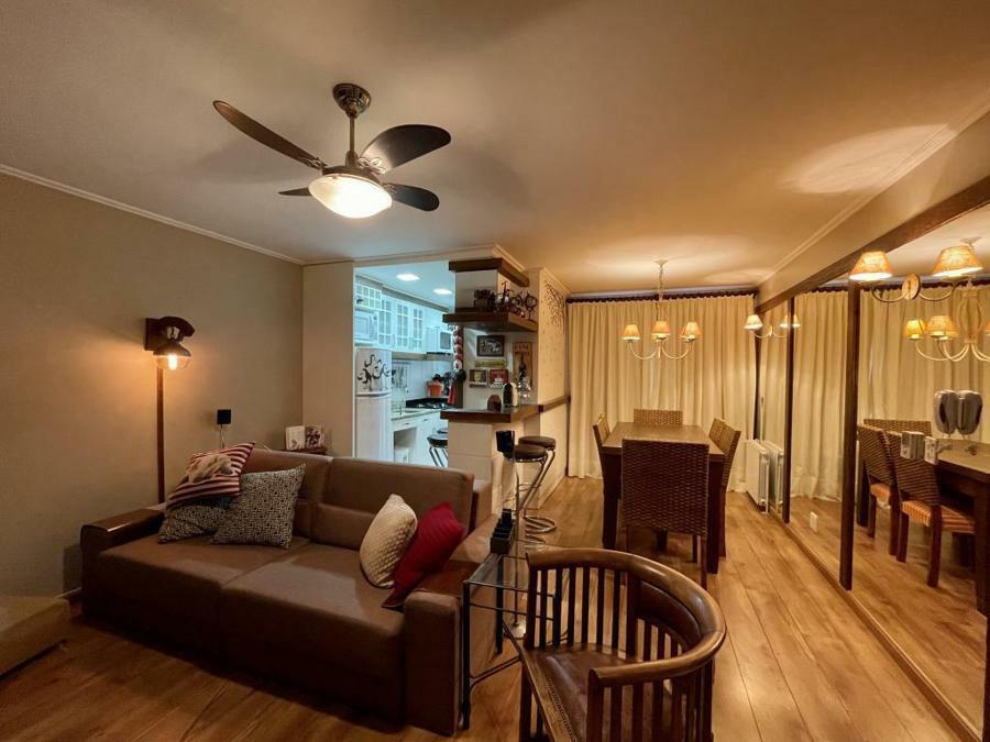 Apartamento perto do centro ! 2 dormitórios (1 suíte com hidro), living com lareira, sacada, banho social, cozinha americana, churrasqueira, lavanderia, calefação, ventiladores de teto e garagem.