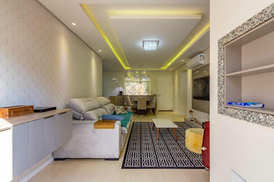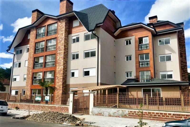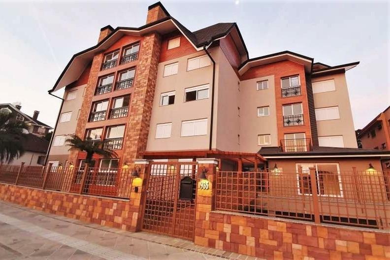 Corretor Gramado e Canela vende: Mobiliado, poucos passos da Catedral de pedra. Apartamento com 2 dormitórios (1 suíte), living com lareira e sacada, cozinha americana com churrasqueira, área de serviço e garagens.