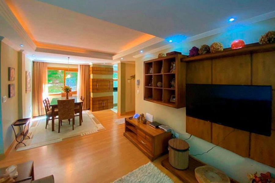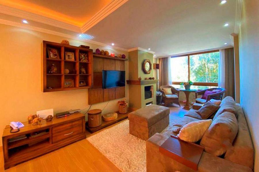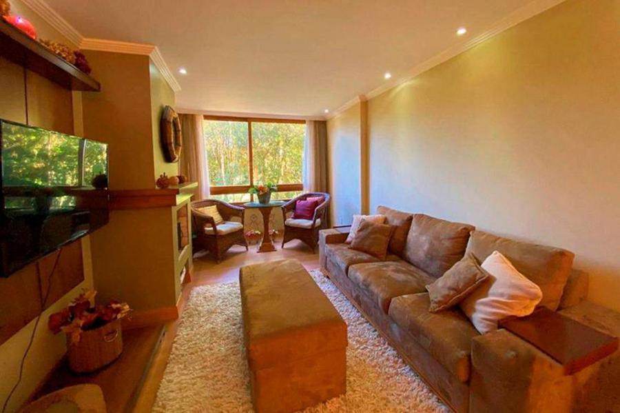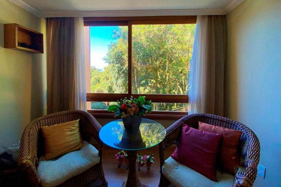 Corretor Gramado e Canela vende: Semi mobiliado no centro de Gramado: Apartamento com 2 dormitórios (1 suíte), living com lareira, cozinha separada com churrasqueira, banheiro social e vaga de garagem. Prédio enxuto