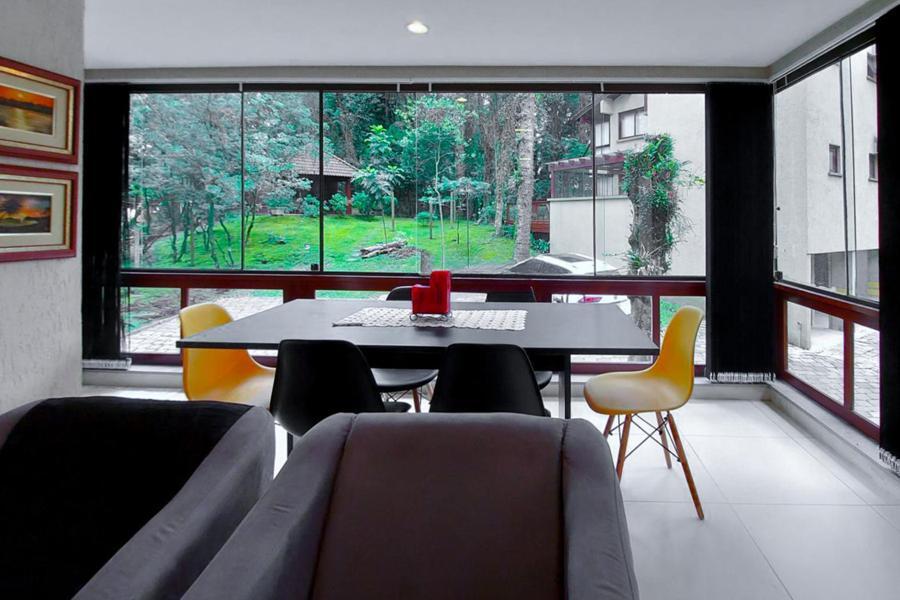 Corretor Gramado e Canela vende: Apartamento mobiliado com 2 dormitórios (suítes), lavabo, living amplo com lareira e sacada, cozinha com churrasqueira, lavanderia, 2 vagas de garagens ( 1 descoberta )