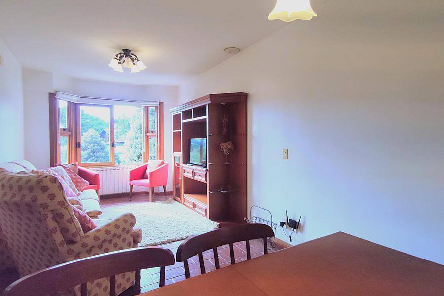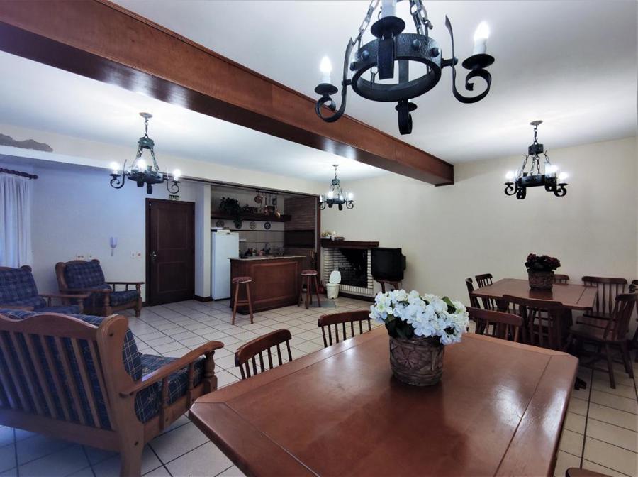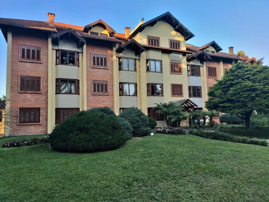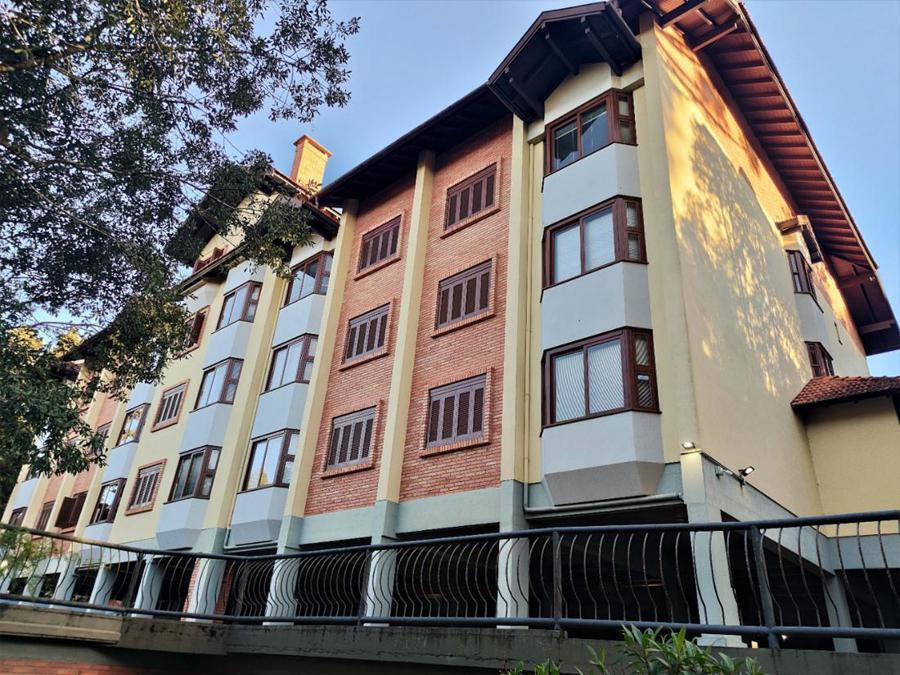 Corretor Gramado e Canela Vende: Apartamento mobiliado perto do centro com 2 dormitórios (1 suíte com hidro, sacada e closet), banheiro social, living com espera para lareira, cozinha americana, lavanderia coletiva e garagem.