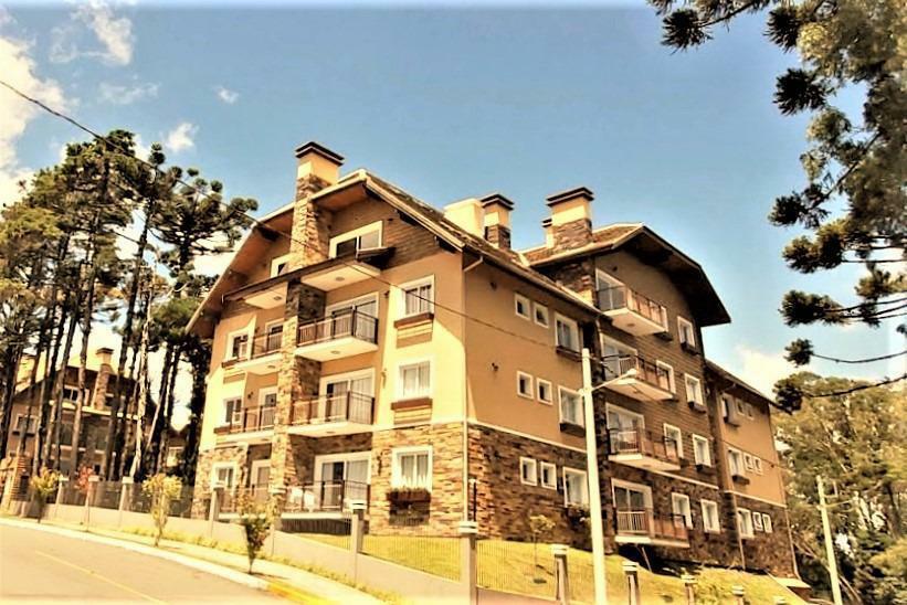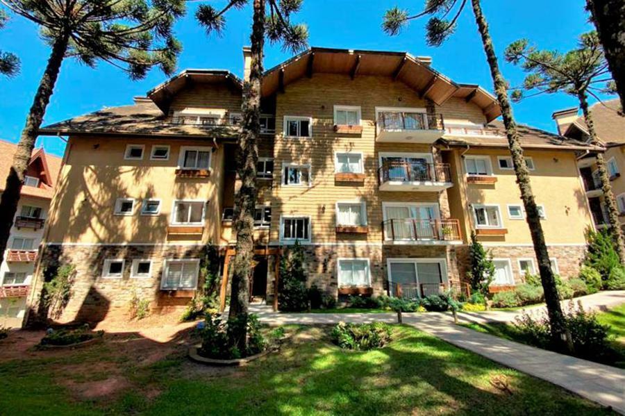 Corretor Gramado e Canela vende: Apartamento amplo em condomínio com infra de lazer em localização estratégica. Possui 2 dormitórios (suítes, sendo 1 demi-suíte), living com espera para lareira e sacada, cozinha americana, lavanderia e vaga de garagem.