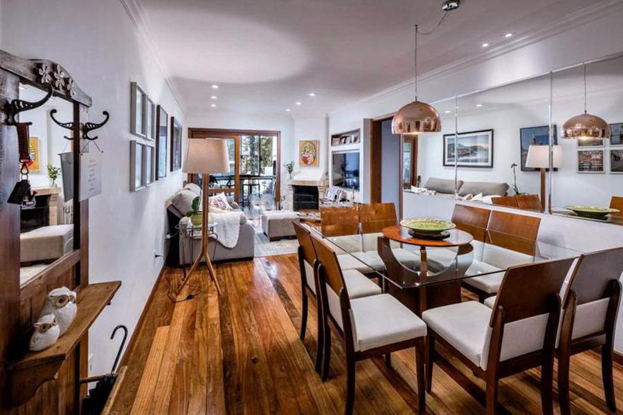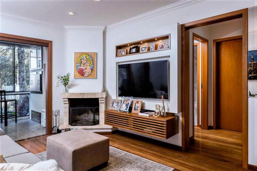 Corretor Gramado e Canela vende: Mobiliado, perto do centro. Apartamento com 2 dormitórios (1 suíte), banheiro social, living com lareira e sacada com churrasqueira, cozinha americana, lavanderia e garagem.