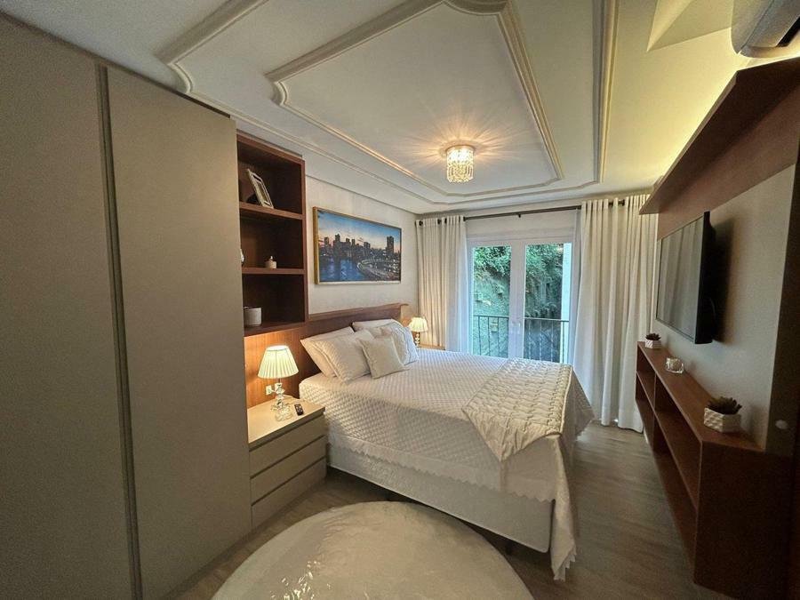 Corretor Gramado e Canela vende: Para quem procura conforto, boa localização, um projeto inteligente e mais qualidade de vida, o Vivendas do Bosque atende a todos estes aspectos. O empreendimento localiza-se em uma região toda arborizada próxinmo a Avenida Borges de Mederidos. Apartamento constituído de 2 dormitórios ( 2 suítes) living com espera para lareira, cozinha americana com churrasqueira, lavanderia, lavabo, hall de entrada, vaga de garagem.