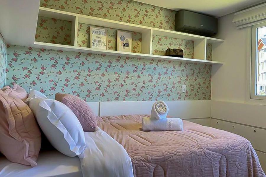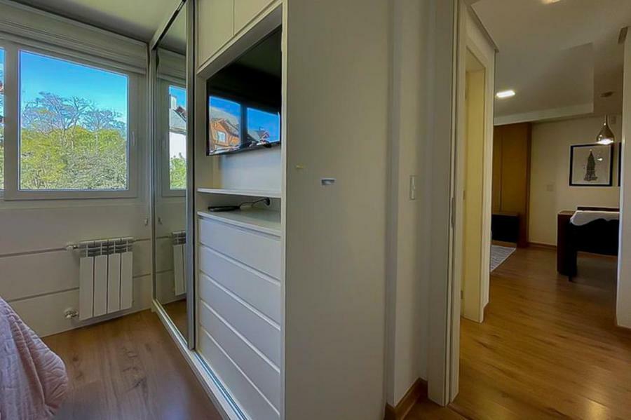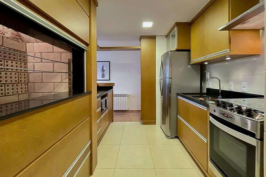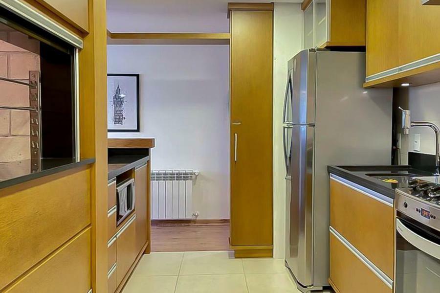 Corretor Gramado e Canela vende : Apartamento de 2 dormitórios mobiliado, distribuído em living dois ambientes, cozinha americana com churrasqueira e área de serviço, box coberto de garagem. Prédio enxuto com elevador.