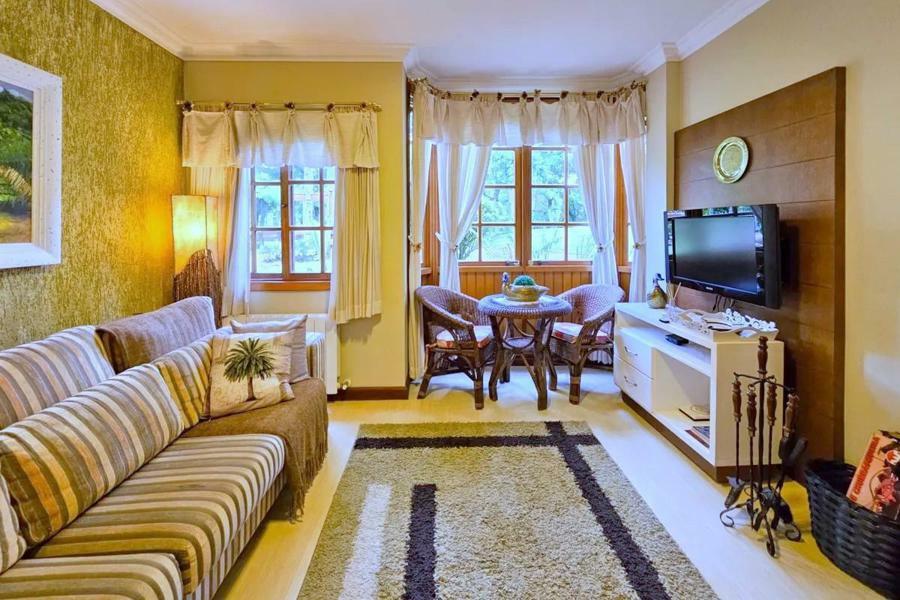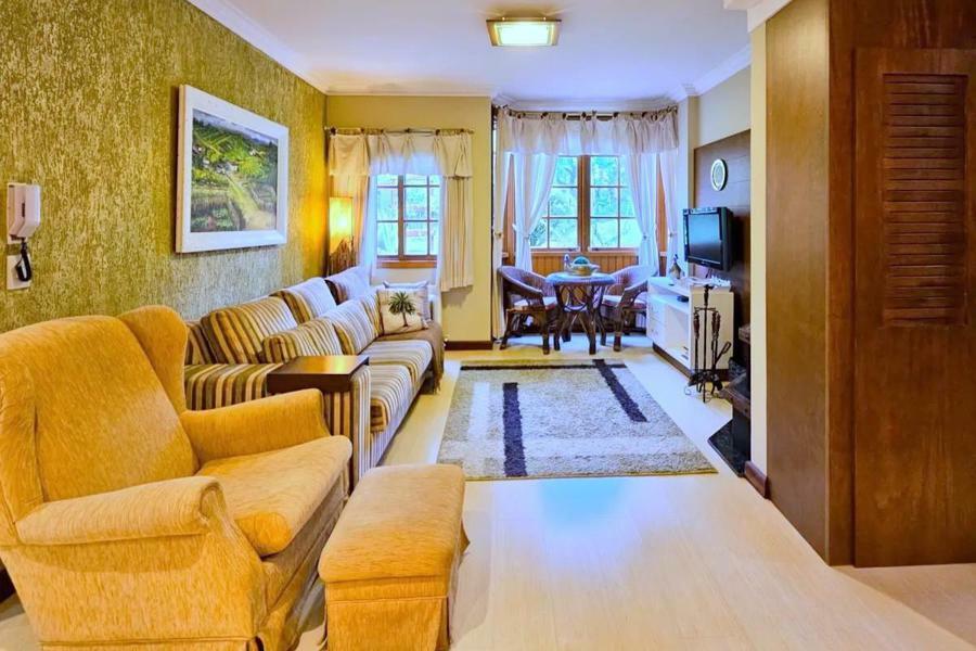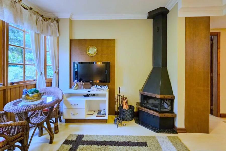 Corretor Gramado e Canela vende: Apartamento mobiliado, a poucos passos da Av. Borges de Medeiros. Apartamento com 2 dormitórios (1 suíte com closet), living com lareira, cozinha americana e vaga de garagem. Prédio com lavanderia coletiva.