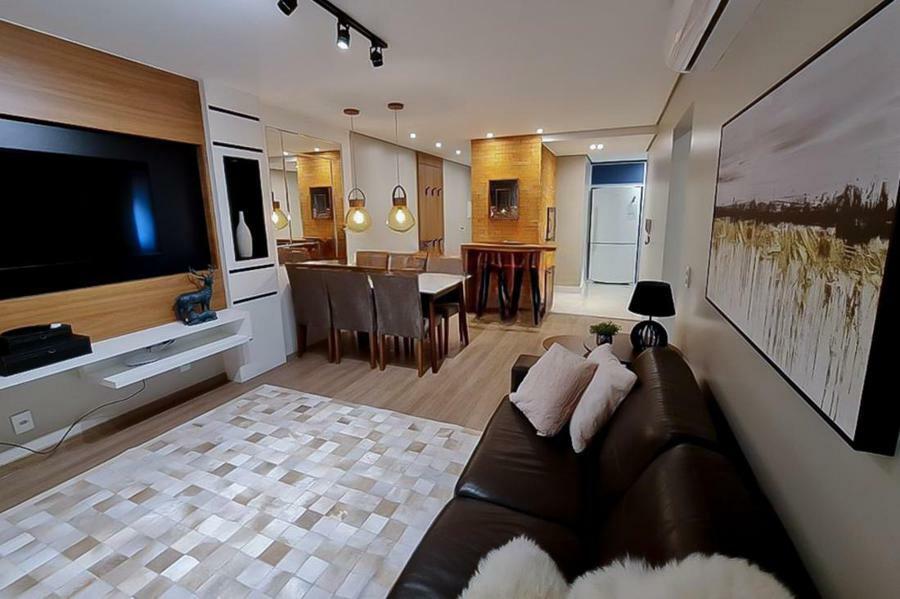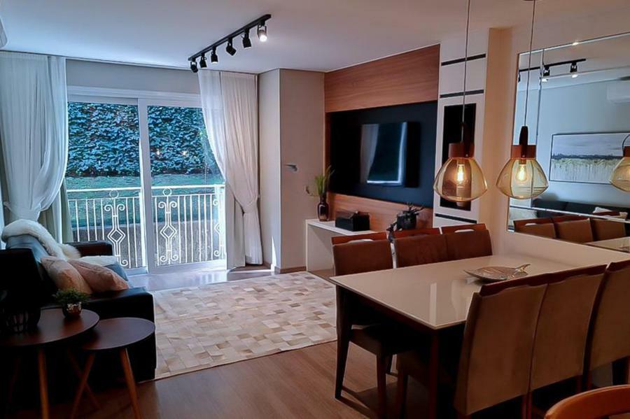 Corretor Gramado e Canela vende : Apartamento mobiliado e equipado na Avenida Borges de Medeiros no centro de Gramado. Composto por 02 suítes, lavabo, cozinha com churrasqueira, área de serviço, living integrado de estar e jantar e uma vaga de garagem.