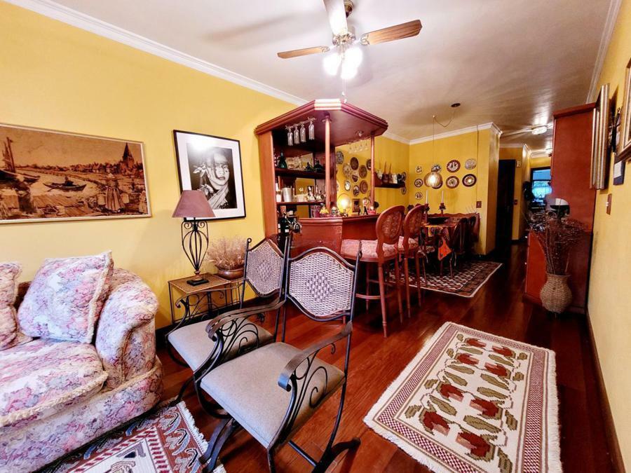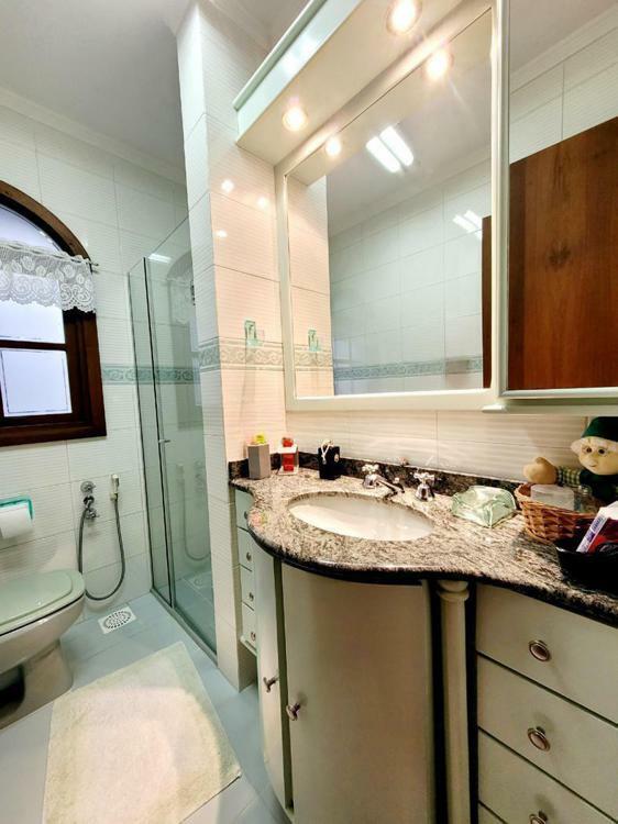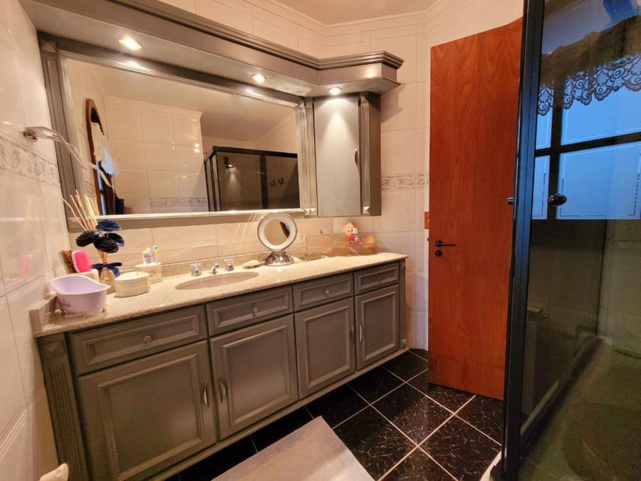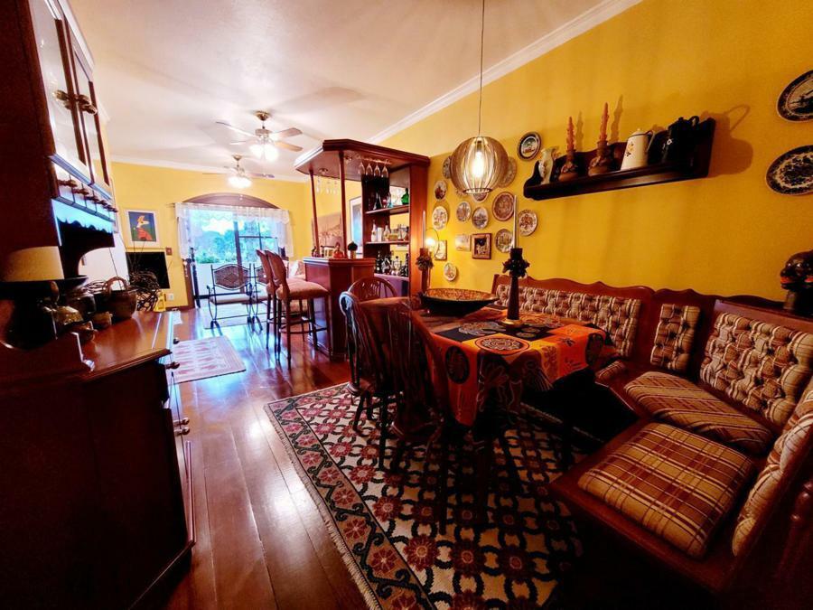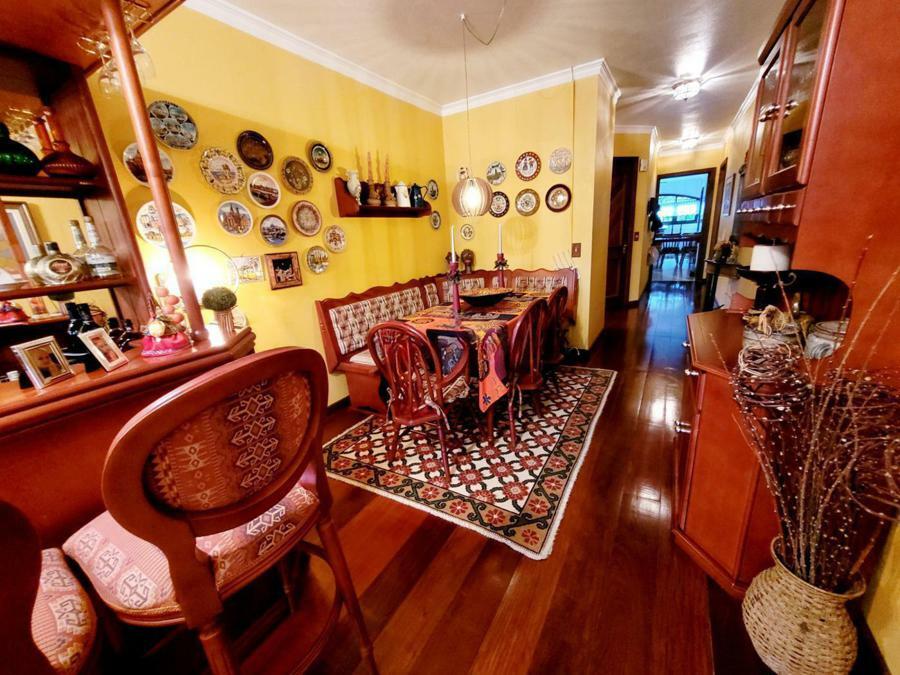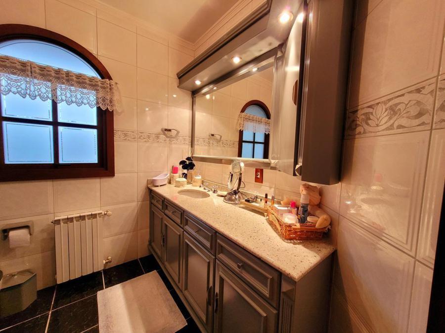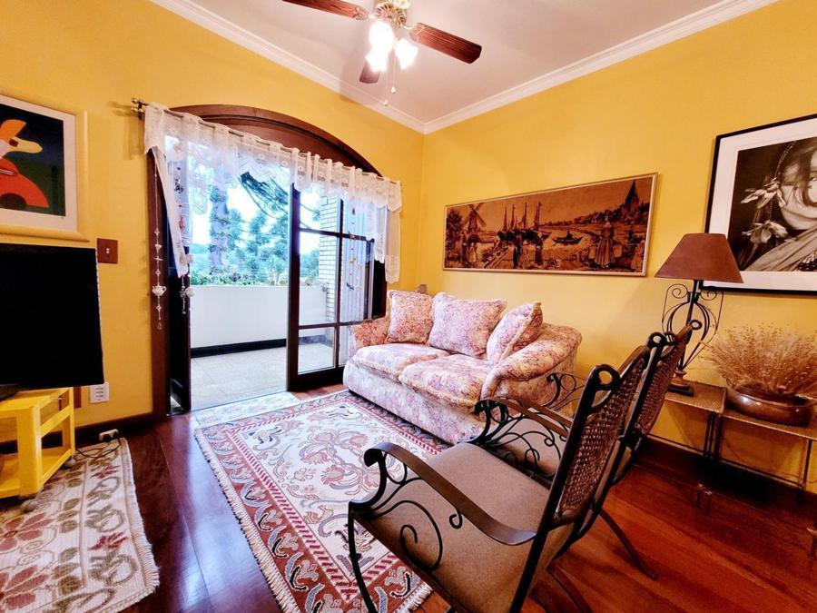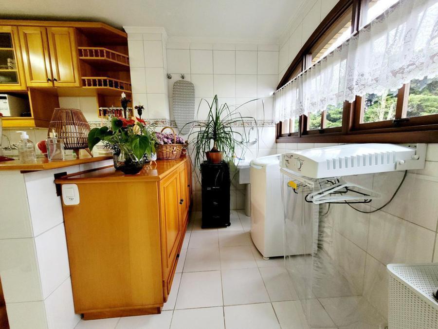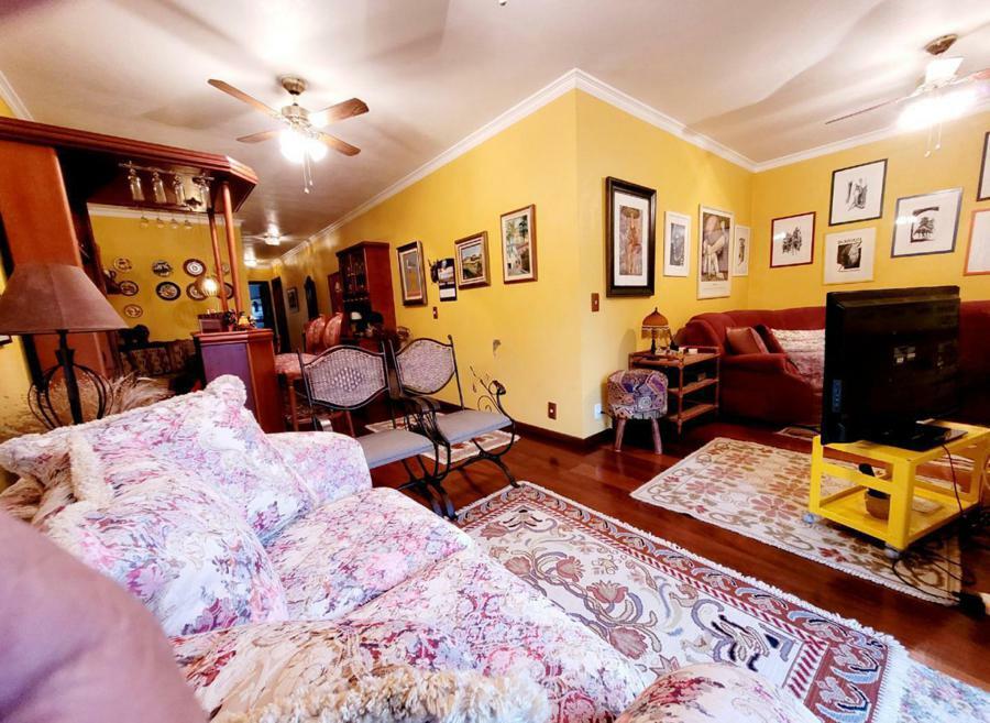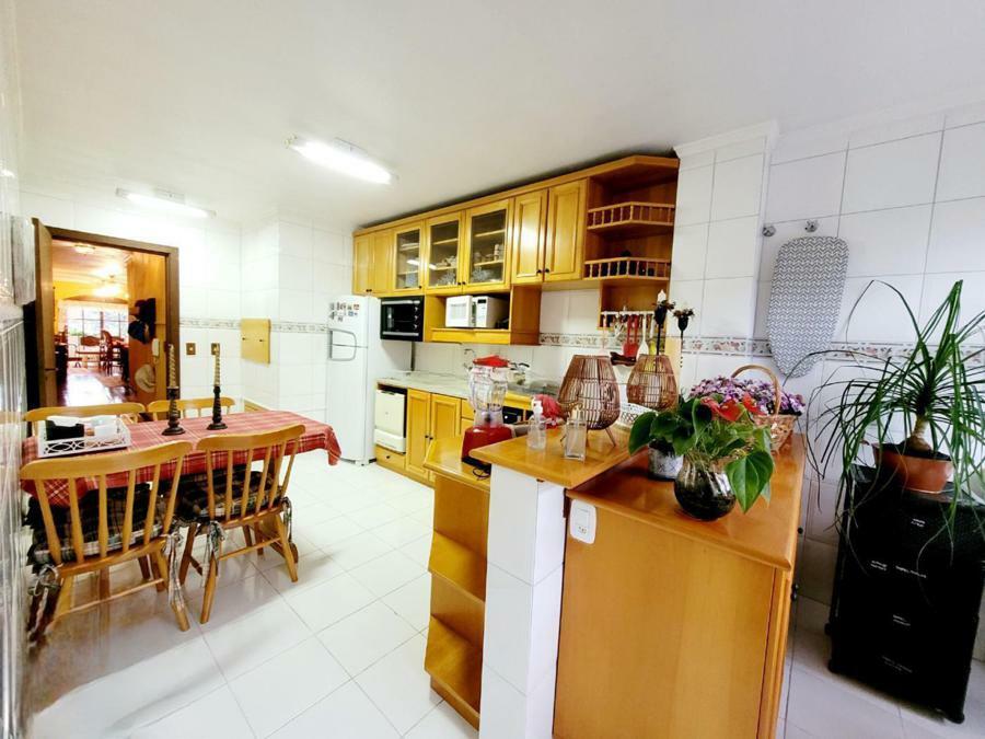 com 3 dormitórios, sendo uma suíte com hidro, living de estar e jantar com lareira, lavabo, a copa cozinha é totalmente equipada e acompanha uma ampla área de serviço, dependência de empregada completa, calefação instalada e uma vaga de garagem.