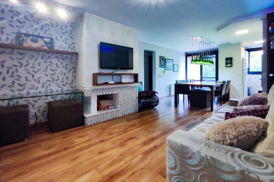 Corretor Gramado e Canela vende: Exclusividade de vendas, mobiliada. Apartamento de 3 dormitórios (1 suíte com hidro), living com lareira e sacada, cozinha americana com churrasqueira, banheiro social, área de serviço e garagens.