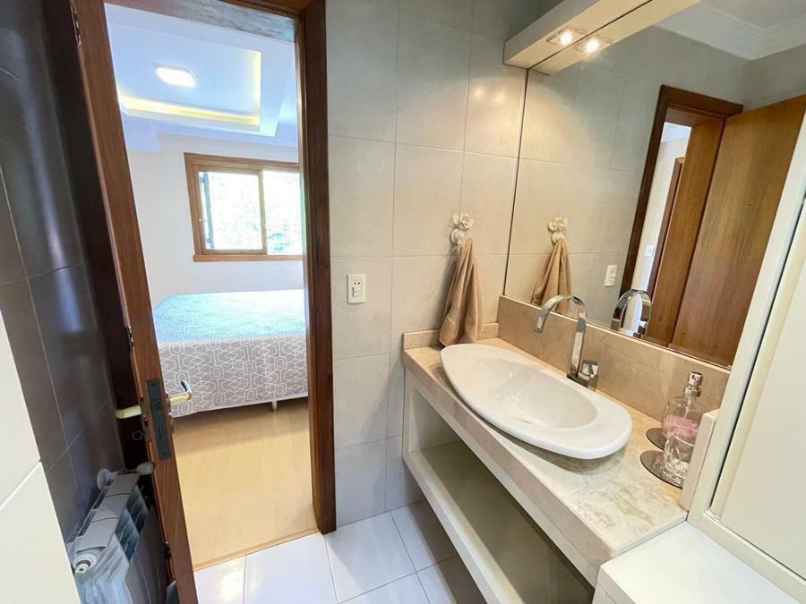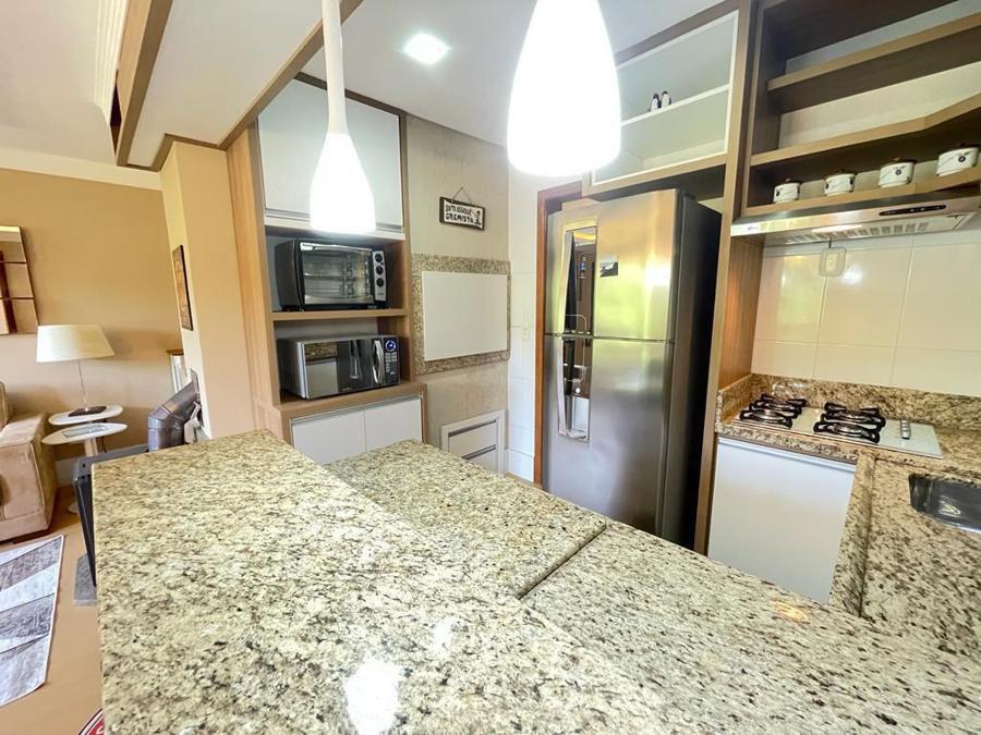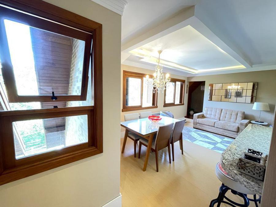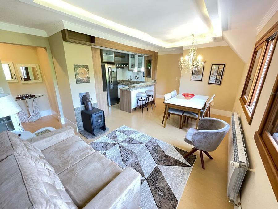 Corretor Gramado e Canela vende : . Apartamento duplex mobiliado com 3 dormitórios ( 2 suítes parte de baixo ), living com lareira e , lavabo, cozinha americana com churrasqueira, lavanderia e vaga de garagem.