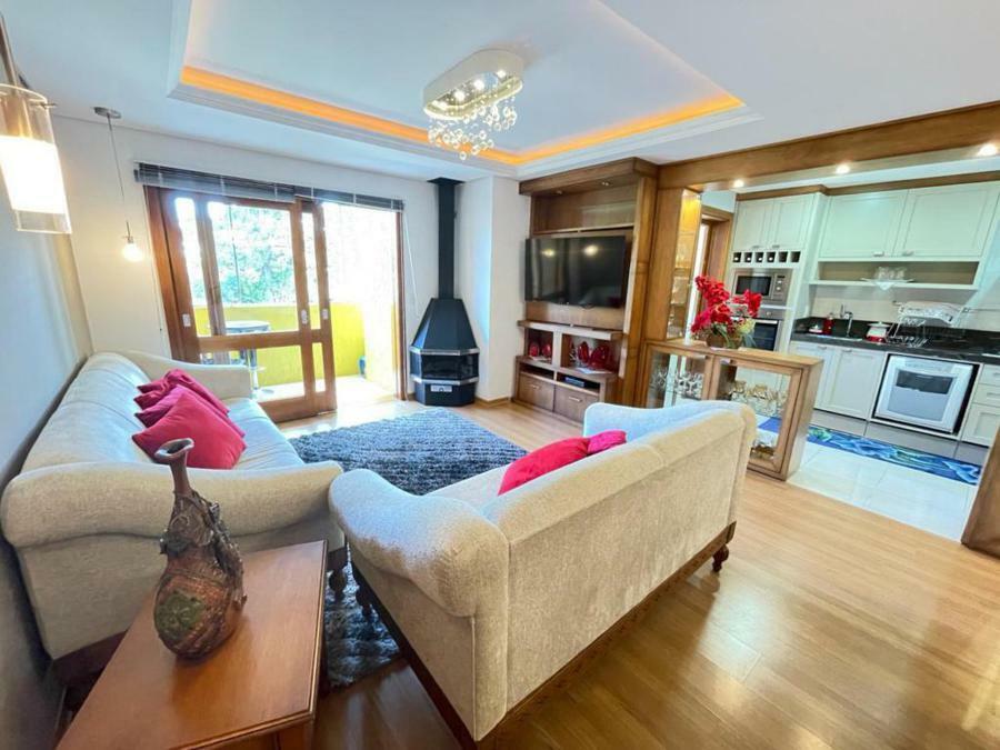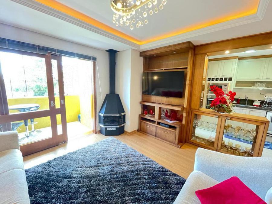 Corretor Gramado e Canela vende: Apartamento mobiliado no centro de Gramado ! Possui 3 dormitórios, (1 suíte ), living com lareira e sacada com churrasqueira, banheiro social, cozinha americana, lavanderia e garagens.