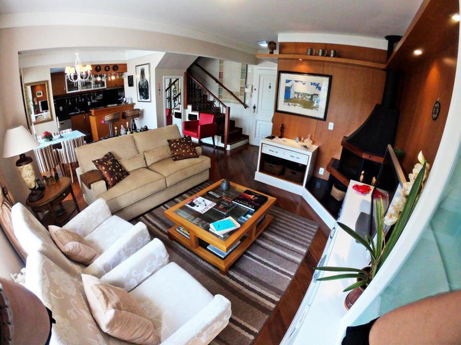 Corretor Gramado e Canela vende : Apartamento mobiliado de 3 dormitórios ( 3 suítes ), living com lareira e sacada integrada, lavabo, cozinha, estar intimo com sacada, área de serviço, vaga de garagem.