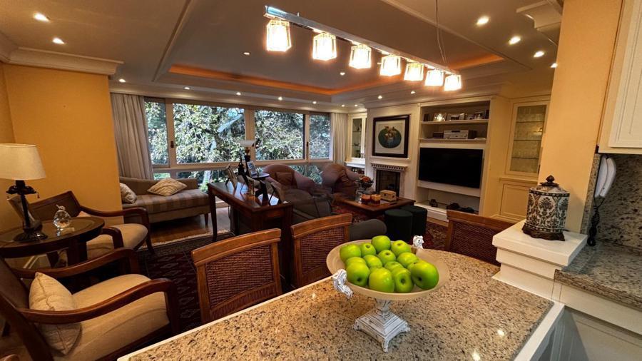 Corretor Gramado e Canela vende: Apartamento mobiliado, decorado e equipado. Possui 3 dormitórios sendo 3 suítes, 1 lavabo, living sala de estar confortável com sala de jantar, churrasqueira, ambiente intimo com lareira, cozinha, lavanderia, calefação instalada, box para 1 carro, orientação solar norte e leste, vista para área verde, ficando a poucos metros do Centro de Gramado, lojas e restaurantes, localizado em local tranquilo e seguro totalmente residencial.