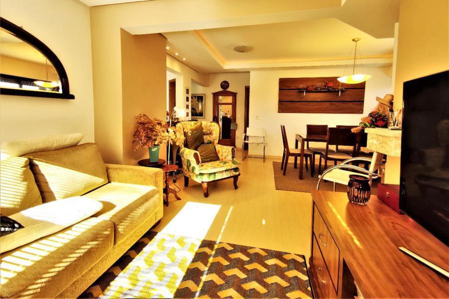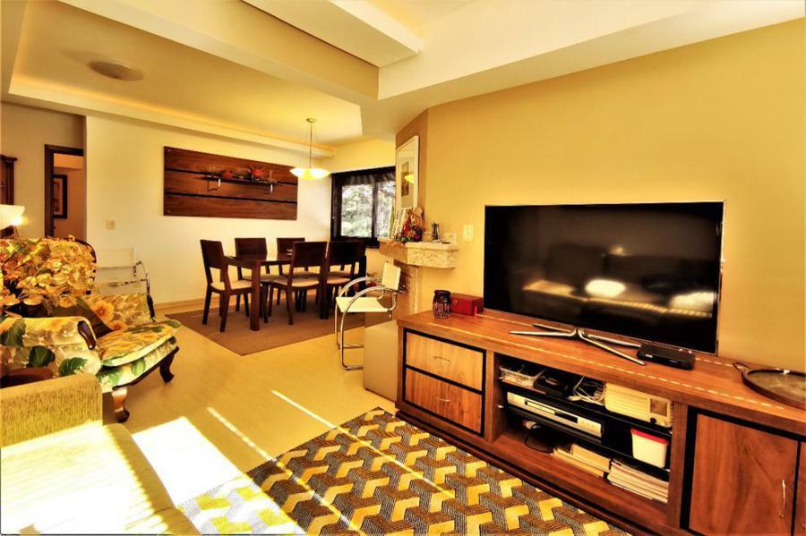 Corretor Gramado e Canela vende: Apartamento de frente para a rua, mobiliado e decorado, em local calmo, a 5 minutos a pé da Av. Borges de Medeiros, possui 3 dormitórios (1 suíte ), banheiro social e lavabo, cozinha americana com churrasqueira, living 2 ambientes com lareira e sacada integrada, calefação, água quente e Split instalados, piso laminado e porcelanato, banheiros e lavabo com ventilação direta. Prédio com elevador, hall de entrada, cercado de muito verde, local tranquilo, muito valorizado e de fácil acesso e fica a 650 metros da Rua Coberta, 150 metros do Mini Mundo, 400 metros do Lago Joaquina Rita Bier.