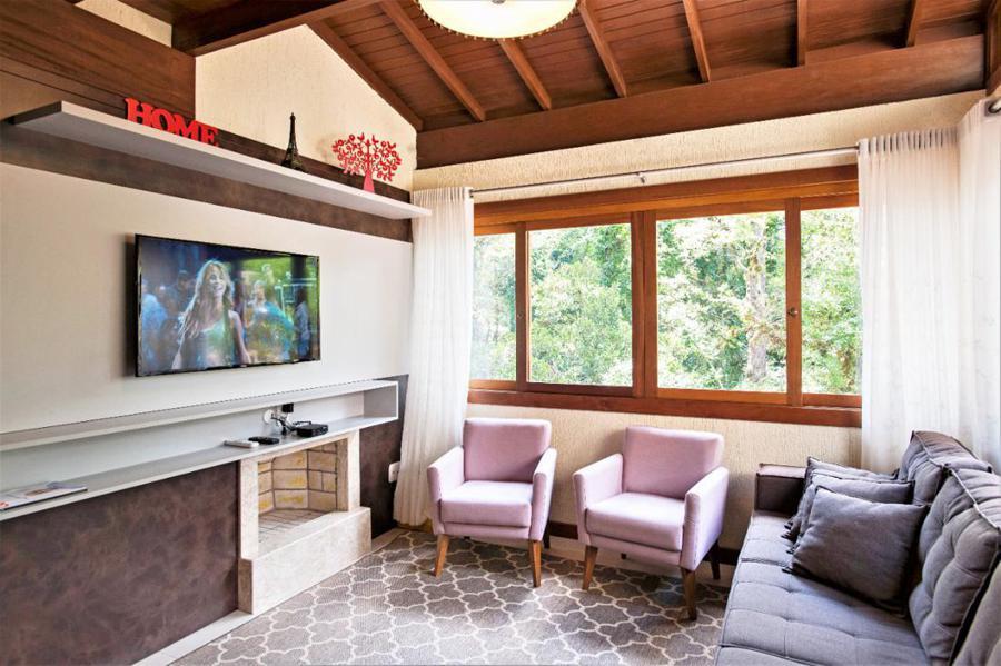 Corretor Gramado e Canela vende : Apartamento mobiliado com 3 dormitórios (1 suíte), living com lareira e sacada integrada, cozinha americana, área de serviço, banheiro social e duas vagas de garagens.